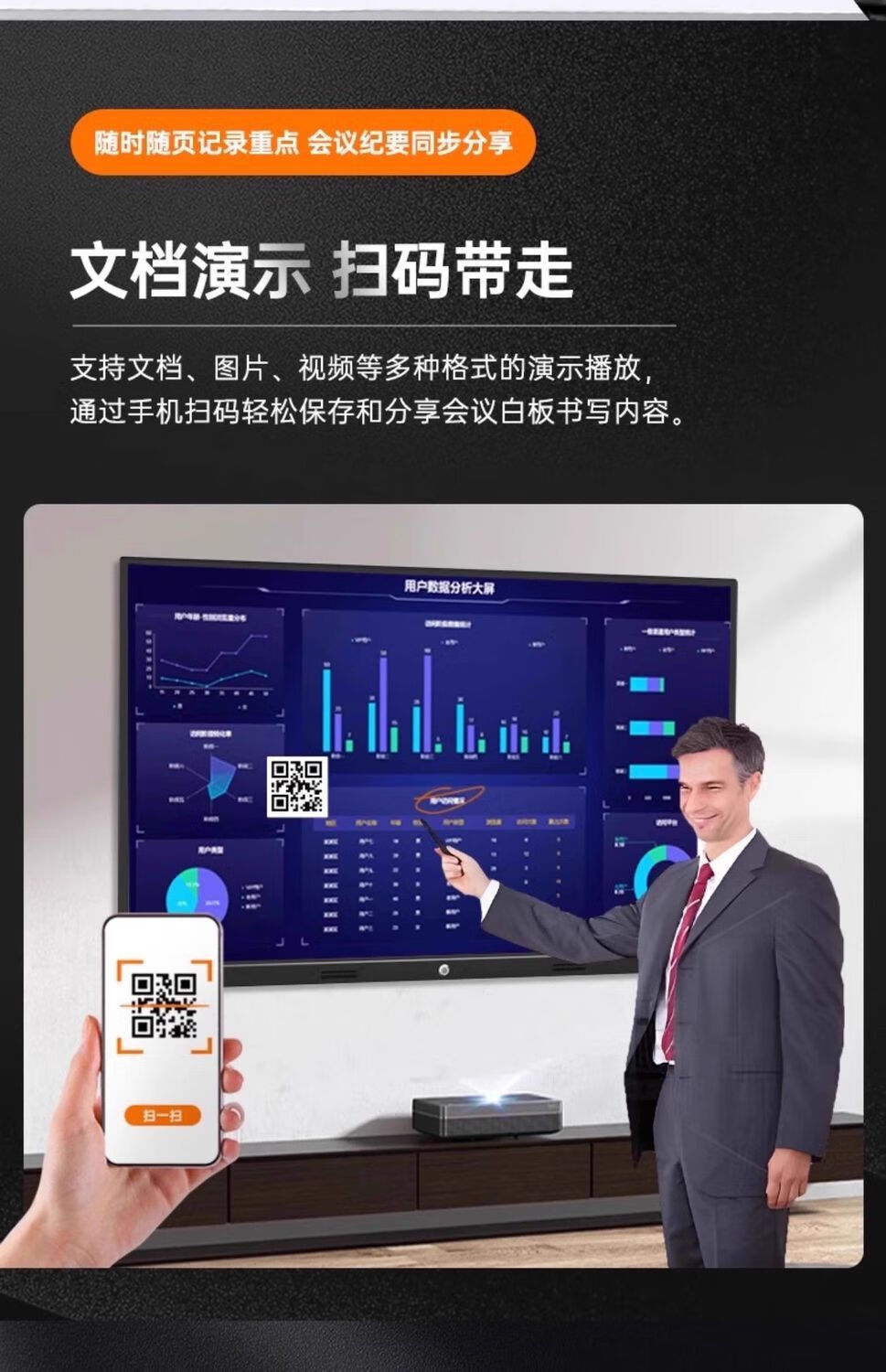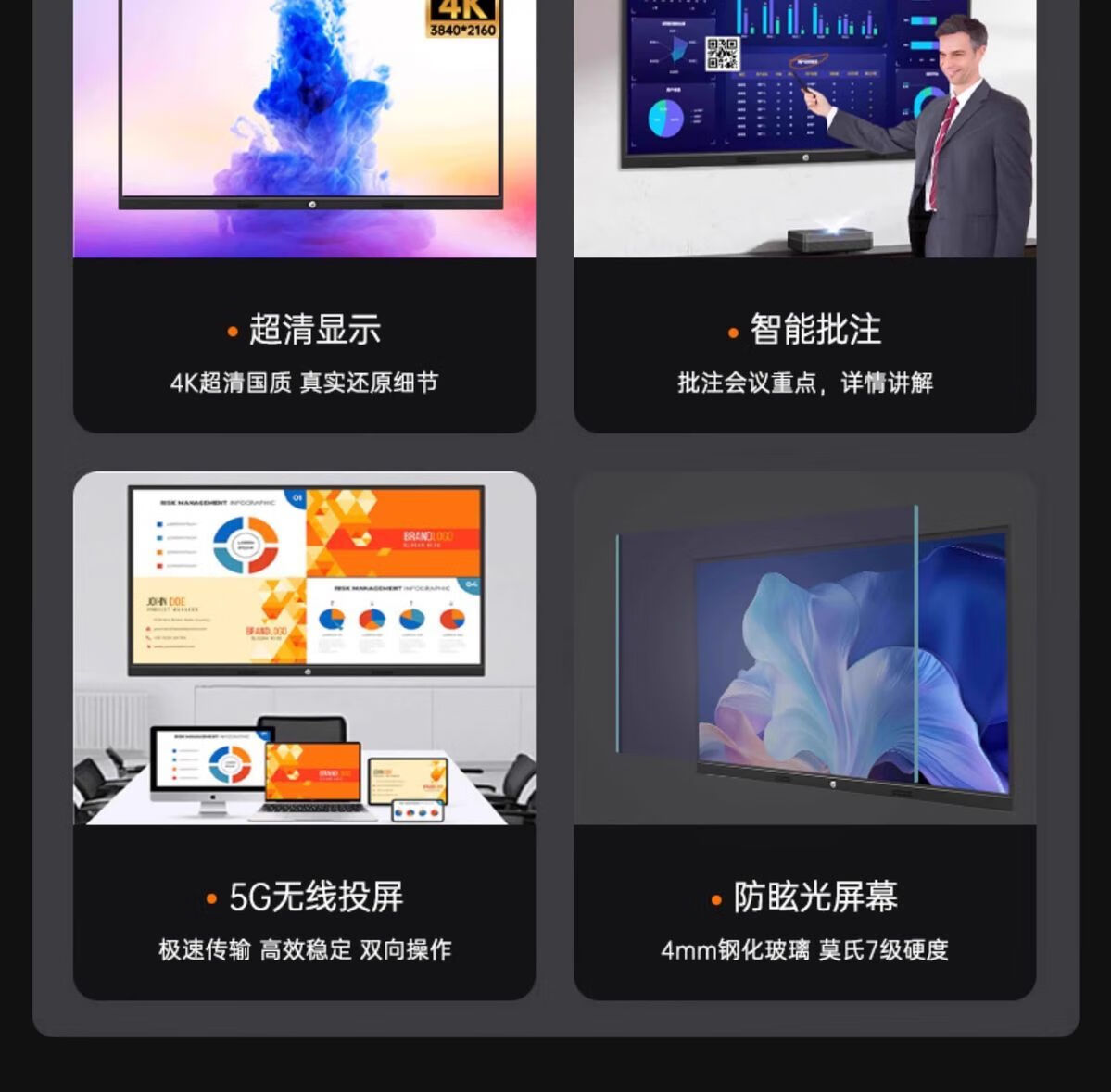 配了这款 86 寸会议一体机,用了 3 个月真心省心!之前开会总有人忘带 U 盘,现在手机扫码就能投屏,无论是 PPT 还是 Excel 表格,传输速度快还不卡顿。最实用的是会议录制功能,重要项目会录下来后,缺席同事看回放就能跟上进度,不用再反复同步。唯一要注意的是首次连接需要连公司 WiFi,提前设置好更方便,推荐中小型企业入手。