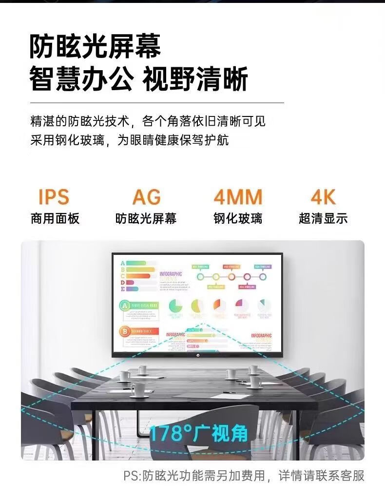 买给公司培训室用的,平时用来讲产品知识、播放案例视频,75 寸的尺寸放在 20 人左右的会议室刚好。最实用的是分屏功能,左边***PT 右边放学员名单,不用来回切换窗口,效率高了很多。还能连接手机投屏,有时候临时想分享手机里的资料,扫码就能连,比以前用 U 盘方便多了。唯一小缺点是自带的音响在人多的时候声音有点小,后来配了个外接音箱就完美了。