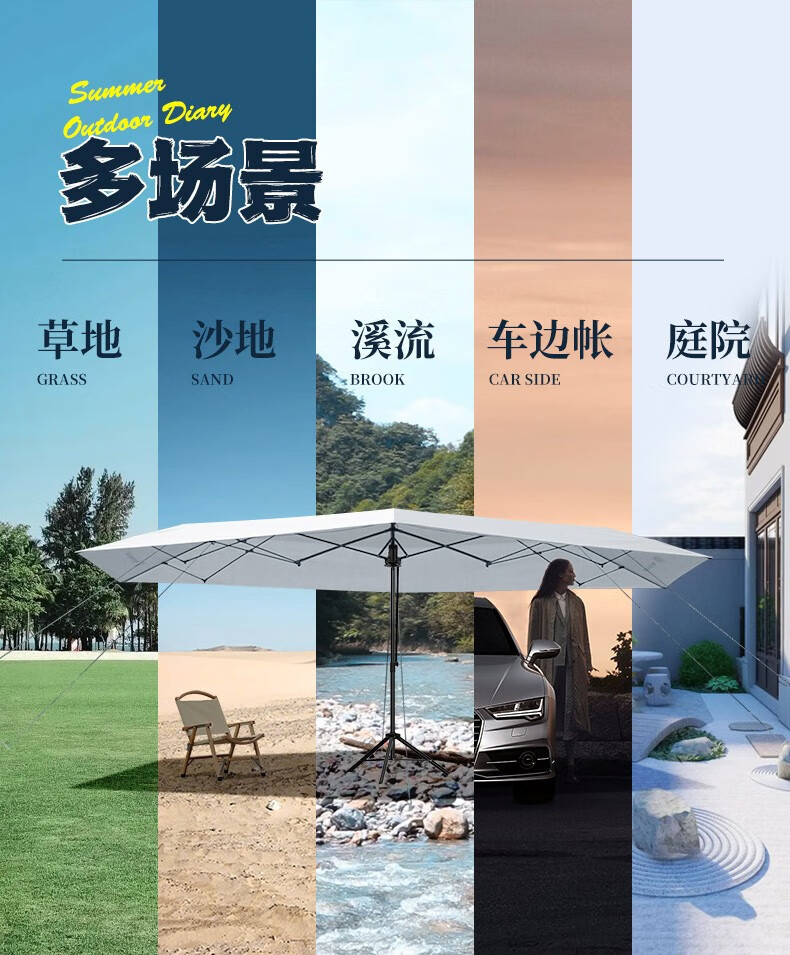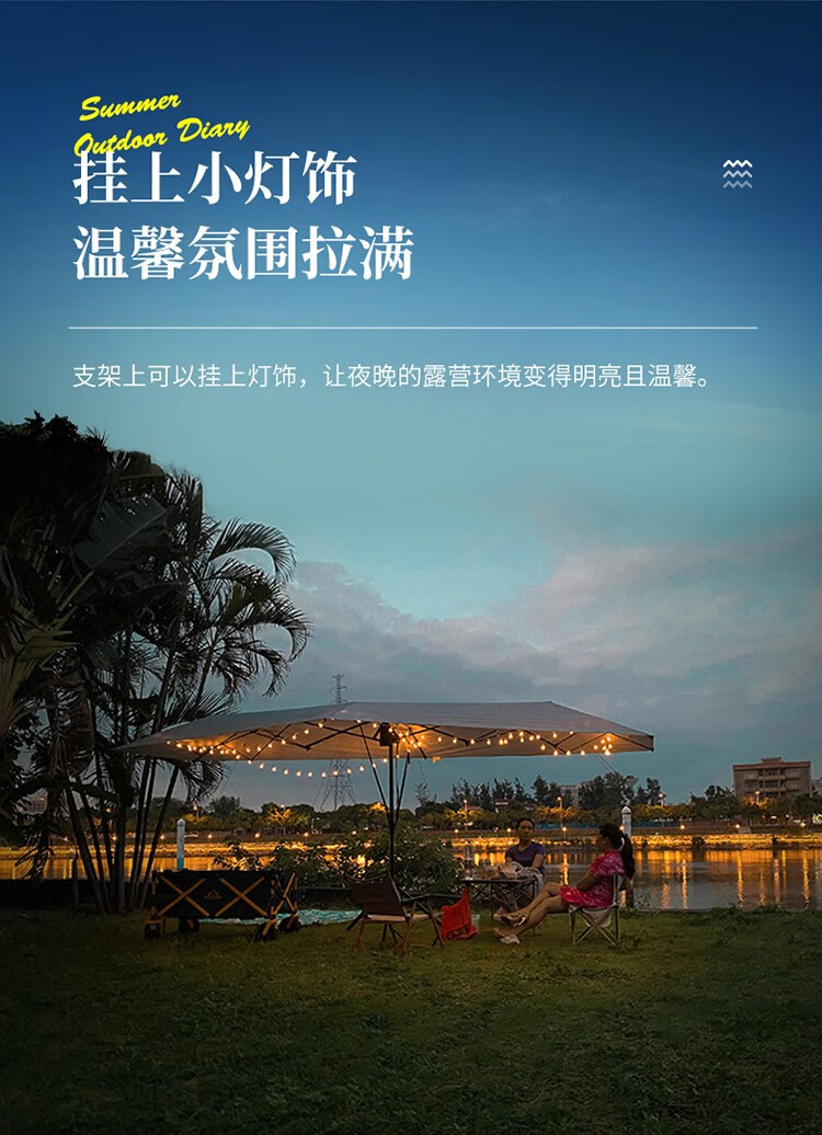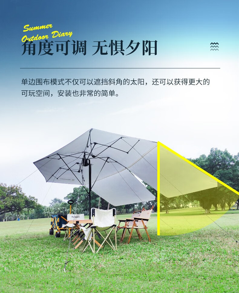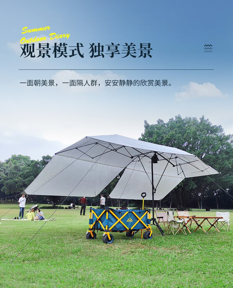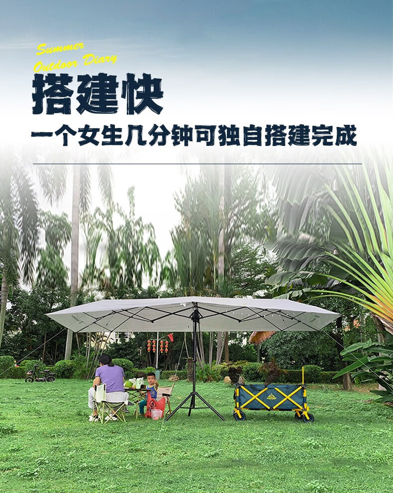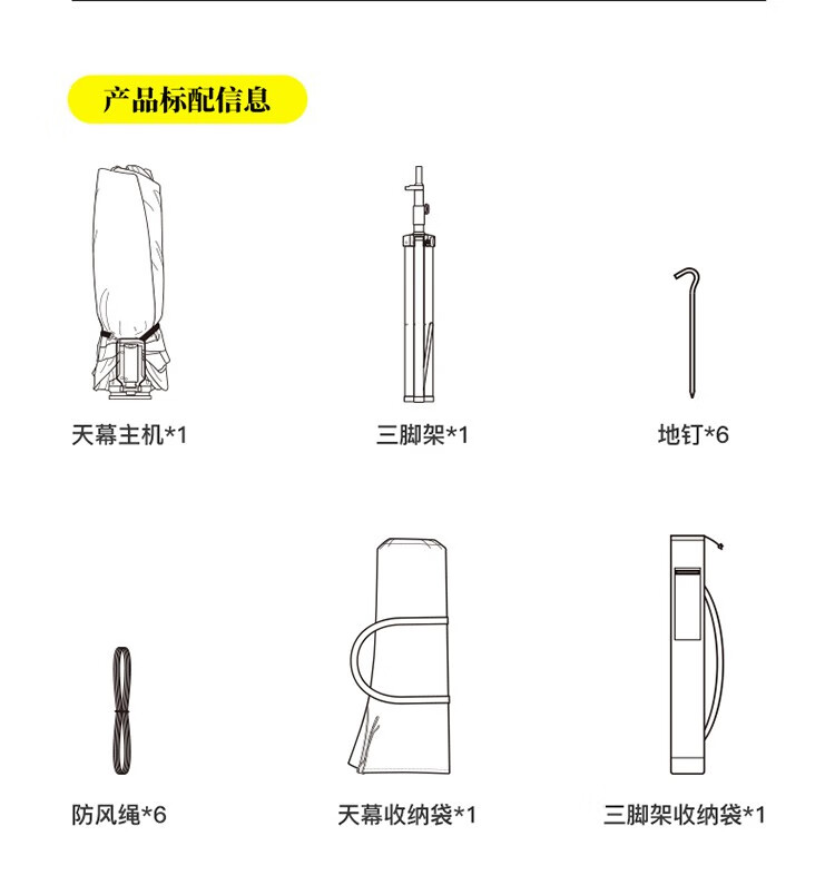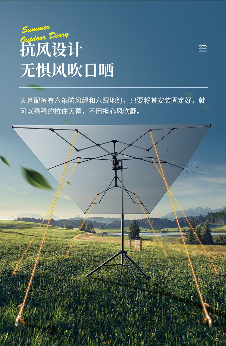 京东快递📦就是快,产品和视频里面的一个样,安装很简单,一个人只要三步三分钟内就轻松完成天幕。而且移动非常方便,再不用露营怕太阳了