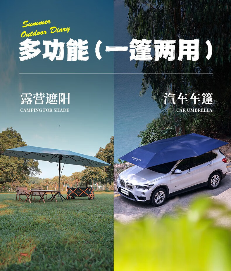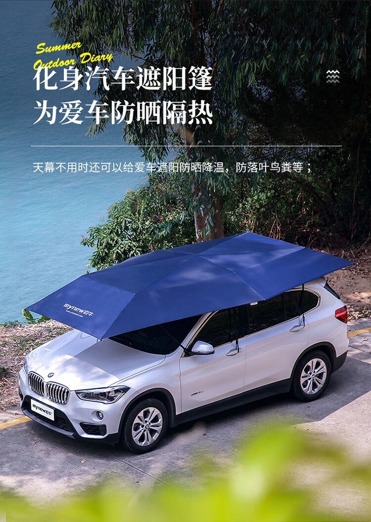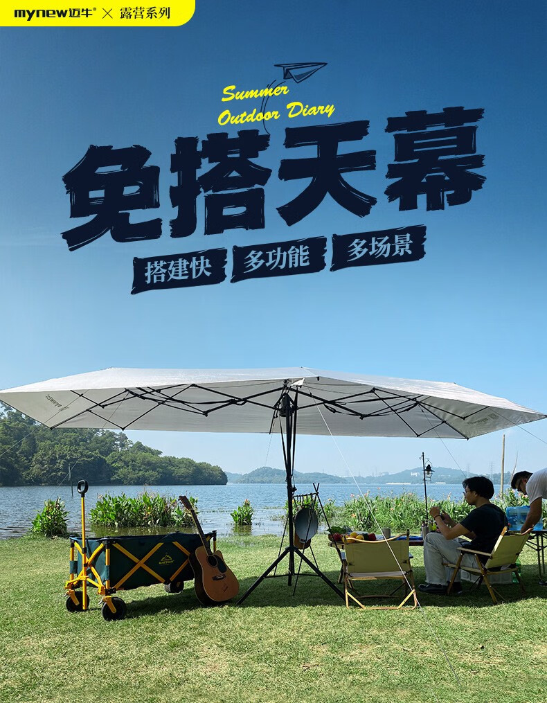 迈牛(MYNEW)天幕折叠多功能免搭户外帐篷露营便携涂银汽车车篷户外遮阳伞两用 5.2米两用天幕-银色