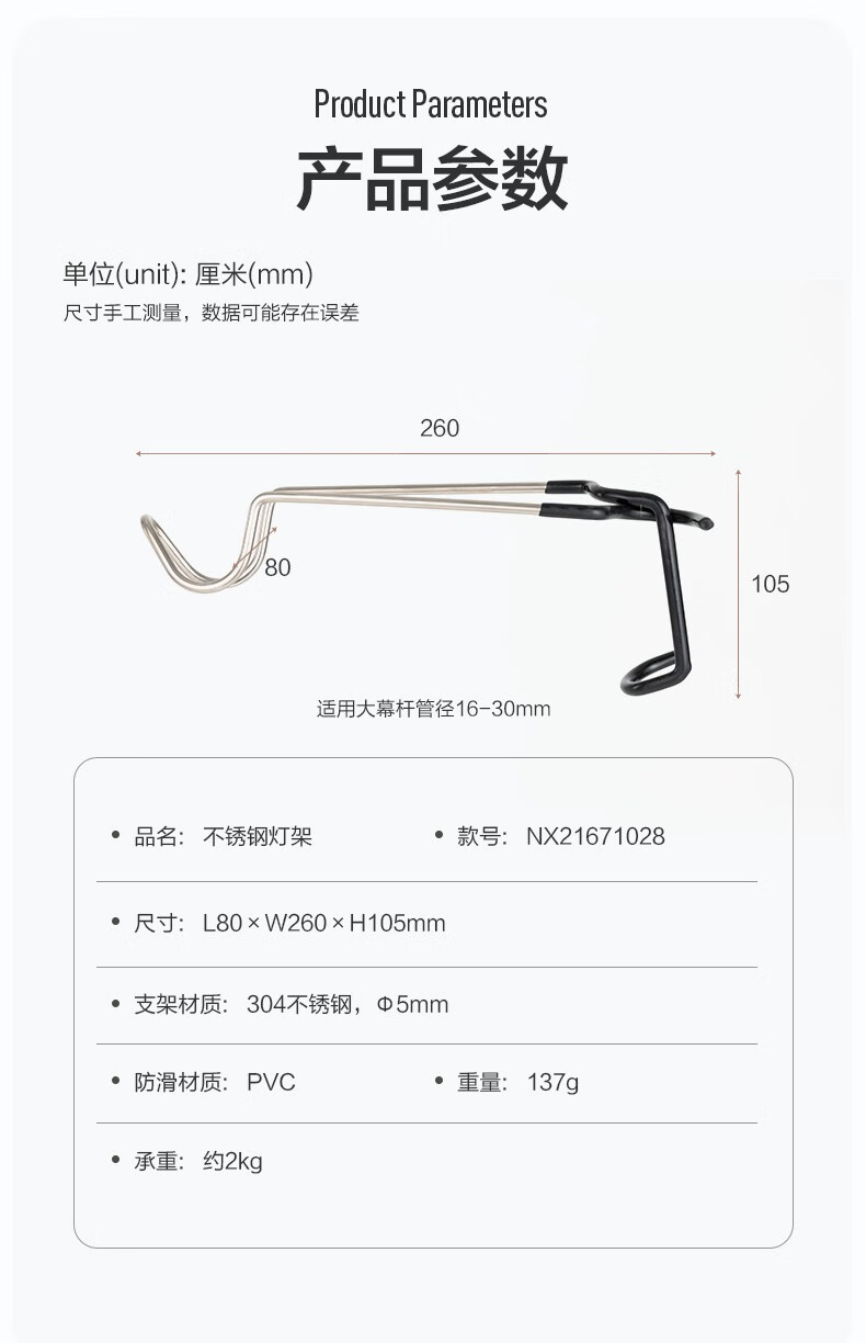 买前以为是一个普通的猪尾巴挂架,没想到拿回来比猪尾巴质量好得多,夹子力度很大,很牢固,做工扎实,好评!