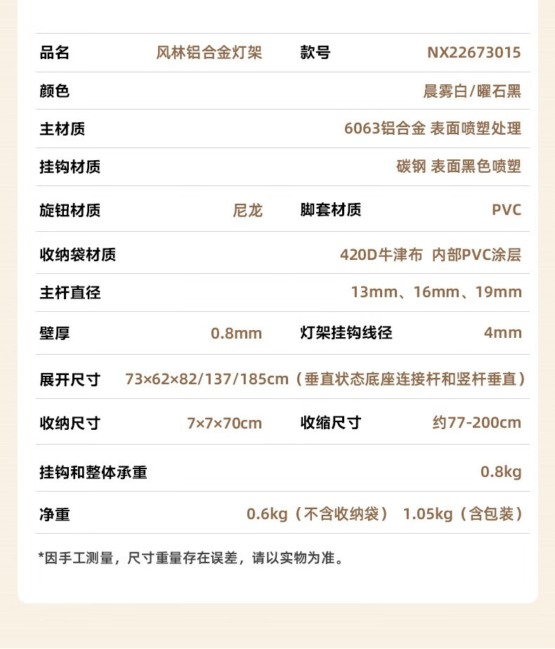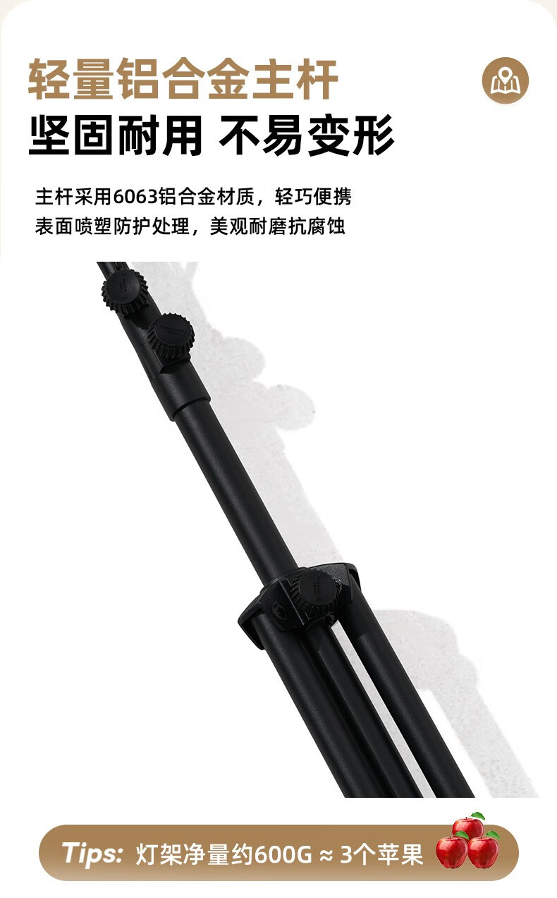 支架非常好用,铝合金材质,很轻,漆面是磨砂质感,很高级。三节收纳,一点也不占地方。配上牧高笛星愿吊灯,简直太有氛围感了。这几天天津雾霾很严重,没机会出去,灯天气好了,一定要在野外试试,这次就先发个在家里用的图吧。