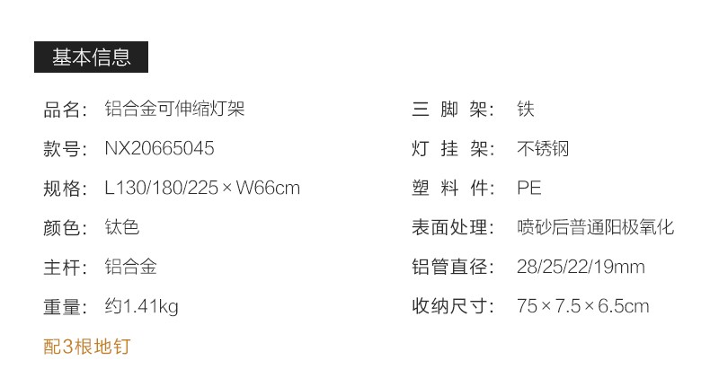 牧高笛(MOBIGARDEN)风驰铝合金折叠便携灯架