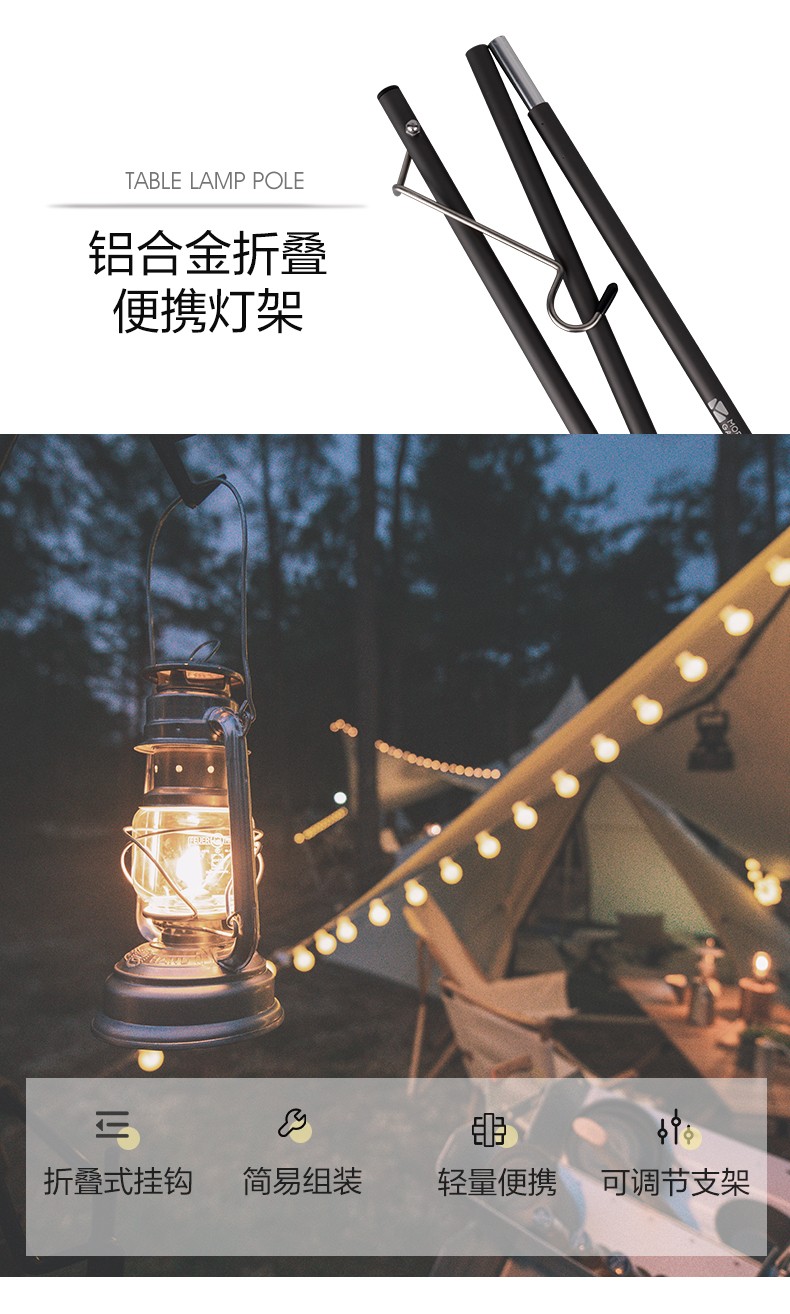 牧高笛 灯架户外露营铝合金灯架露营灯杆可折叠轻量便携照明灯架支架 悬挂灯架NX21671028