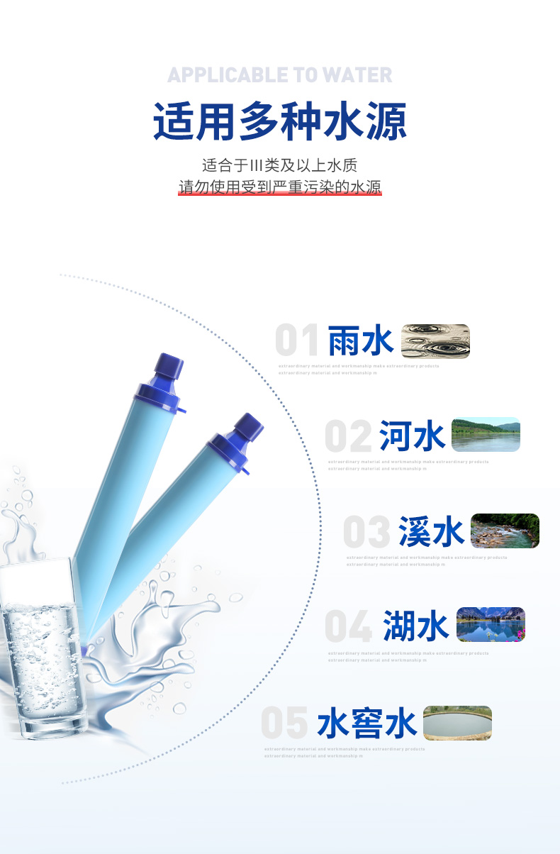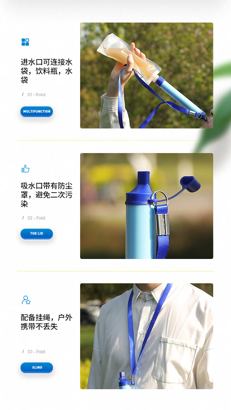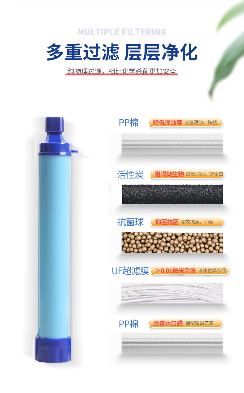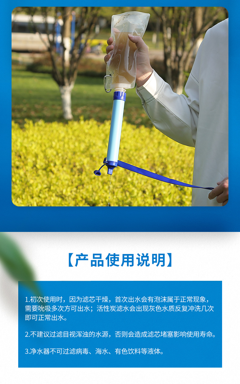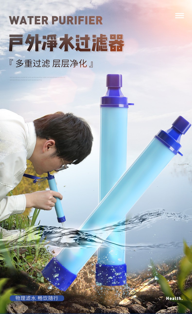 初构想户外净水神器便携式净水过滤器野外探险滤水吸管生存备应急求生用 浅蓝色