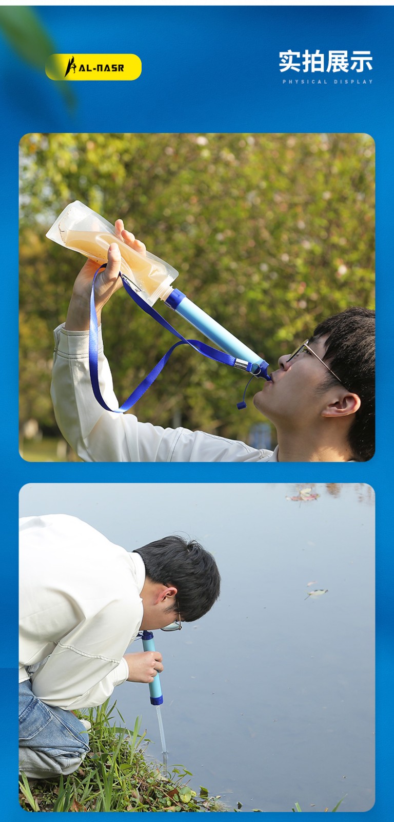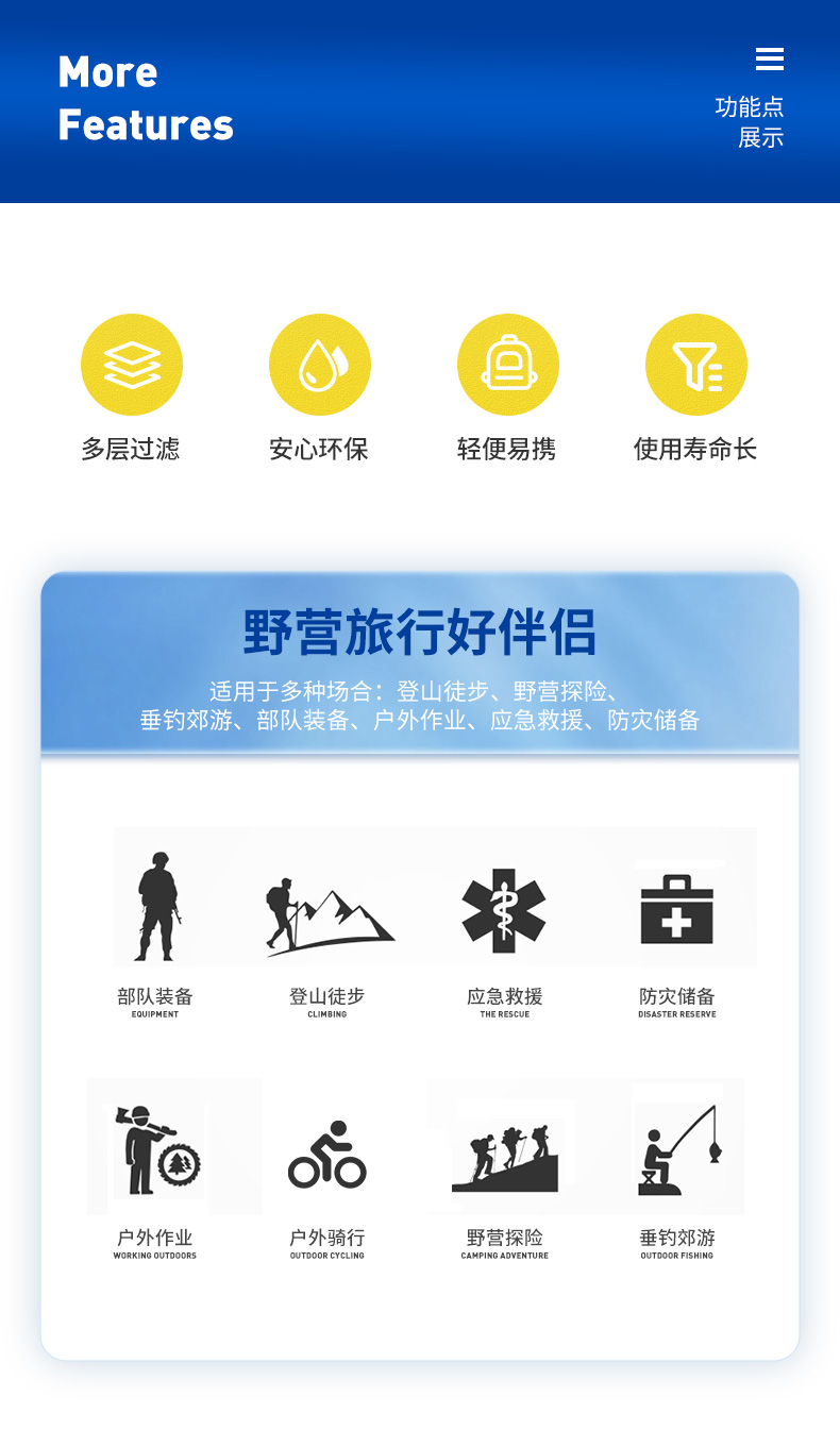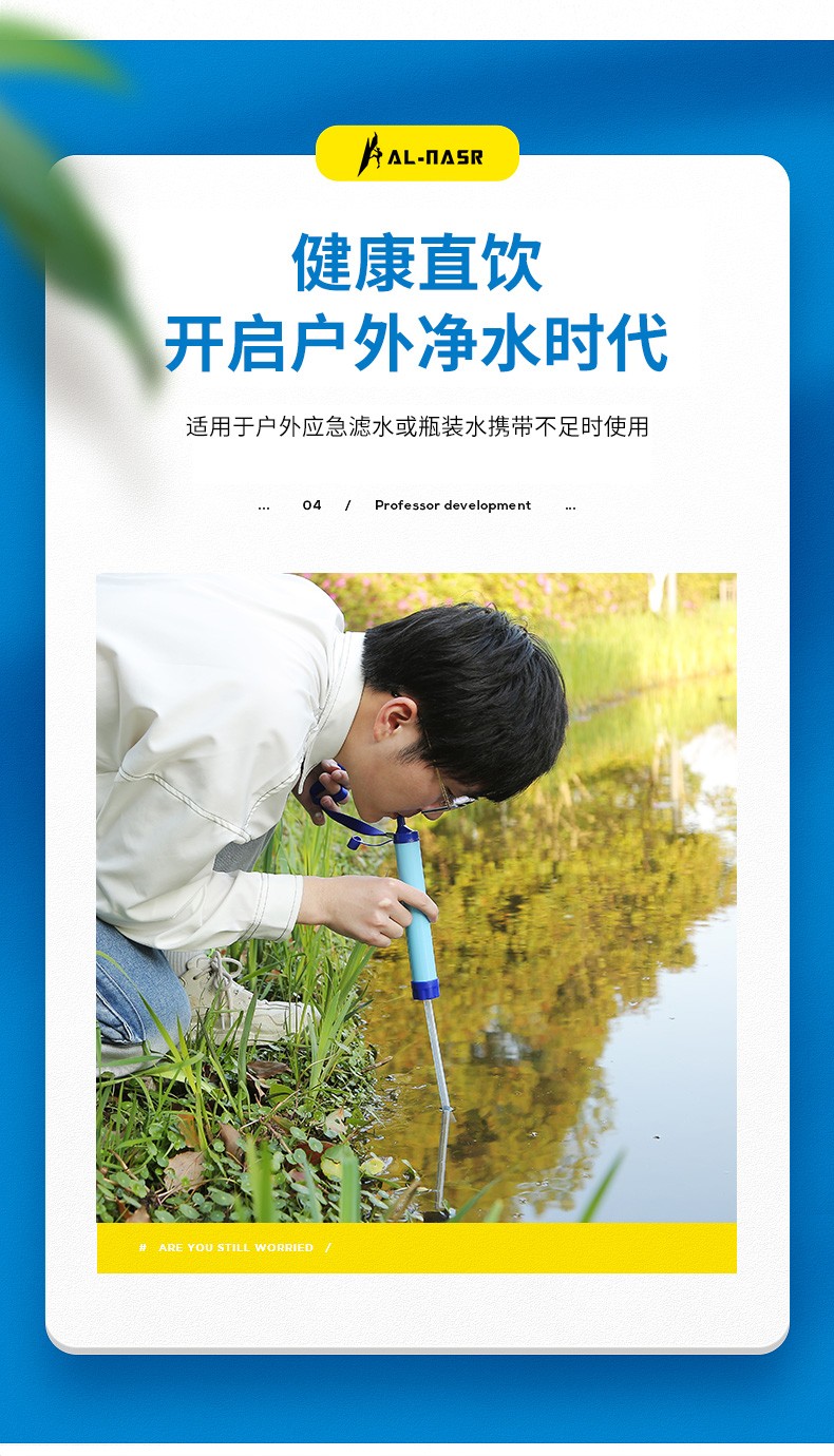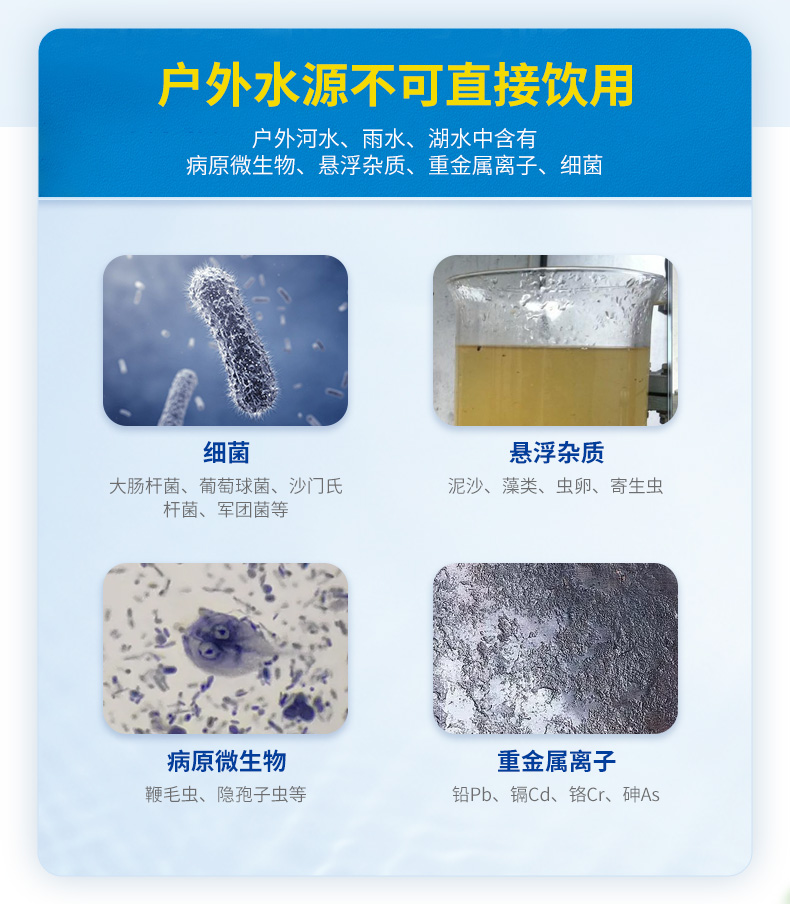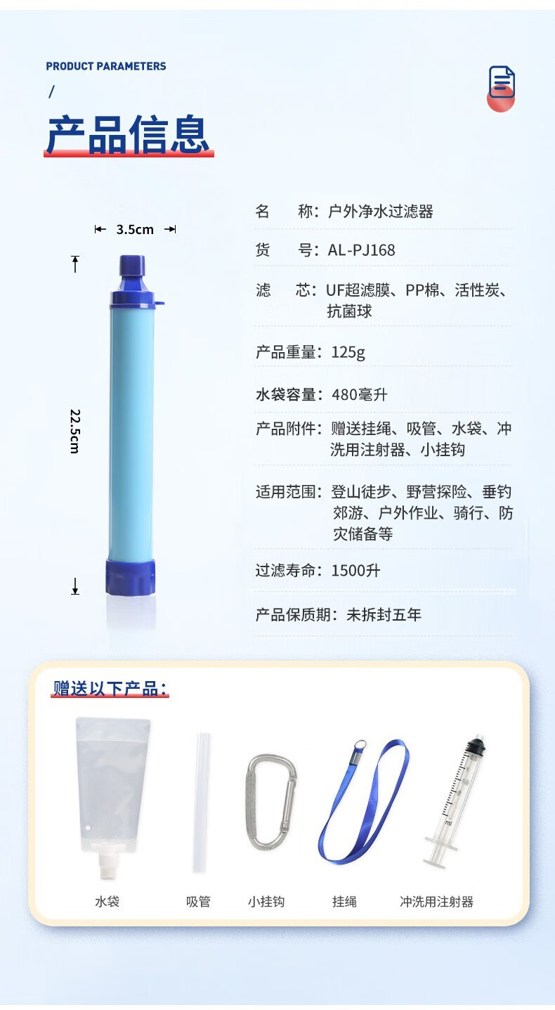 初构想户外净水神器便携式净水过滤器野外探险滤水吸管生存备应急求生用 浅蓝色