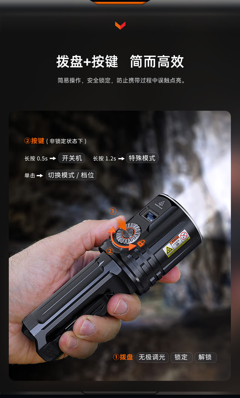 飞利浦手电强光超亮可充电家用户外远射长续航应急便携手电 [SFL8286]无极调光+柔光罩或