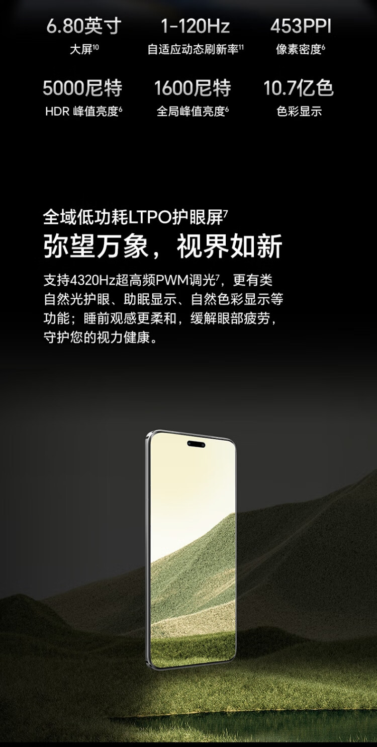 高频PWM调光;SGS认证;LTPO屏幕;德国莱茵护眼;巨犀玻璃