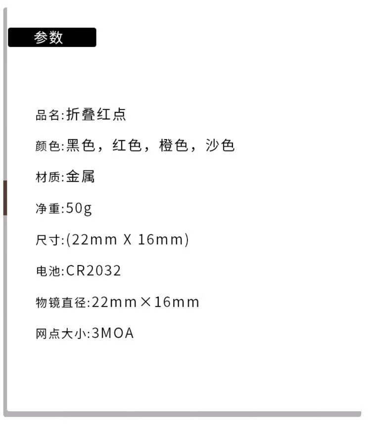 突鹰折叠红点瞄准镜高透抗震虹膜玻璃镜片内红点快速寻鸟镜红点瞄准器 橘色