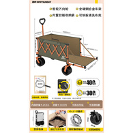 疆屿户外露营车便携折叠营地推车野营拉车摆摊快递拖车儿童可躺拉车 珊瑚橙聚拢MAX推拉一体+遮阳棚
