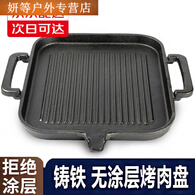 铸铁不粘烤盘无涂层卡式炉通用烤肉煎烤盘家用 [加厚双耳]铸铁条纹25*30cm