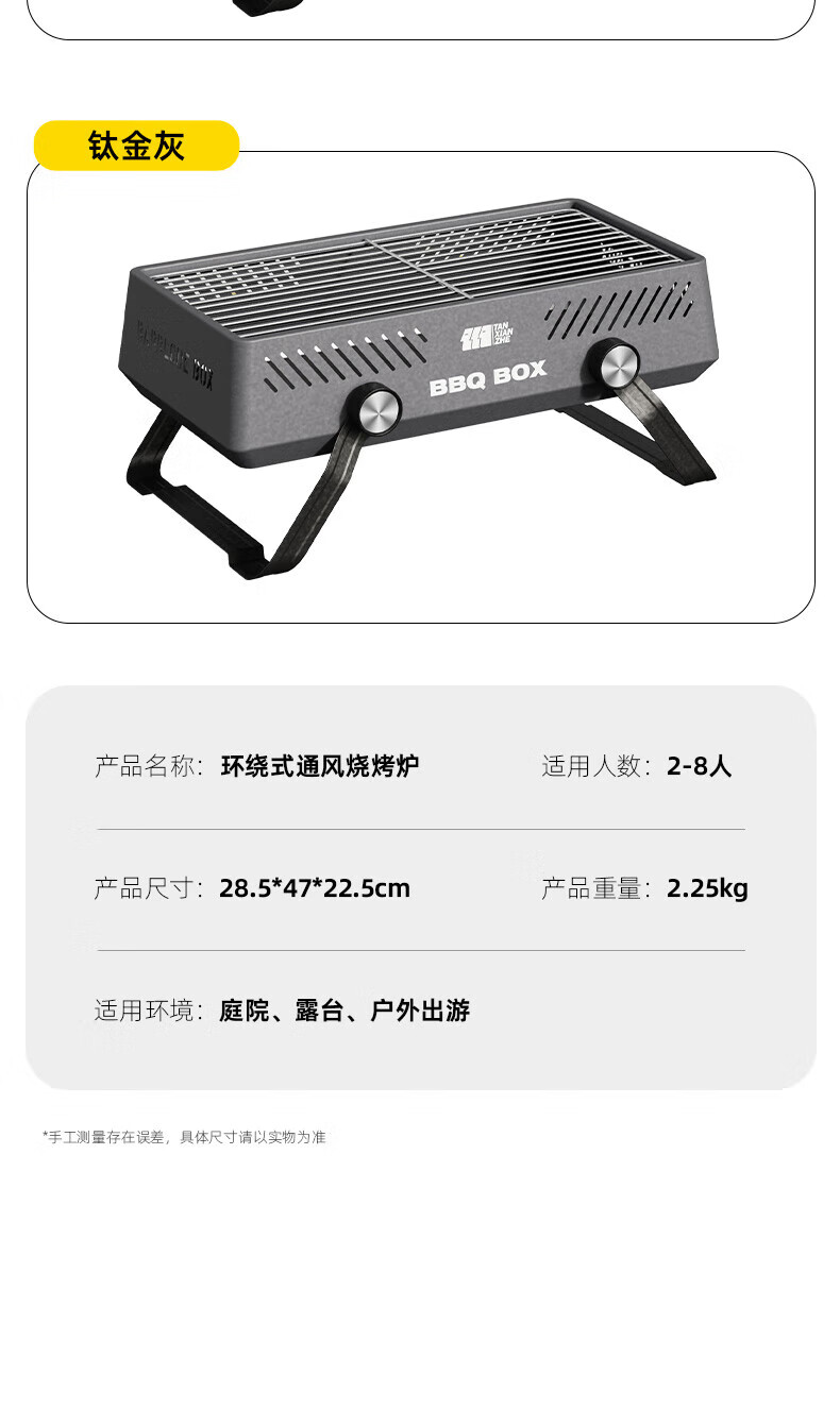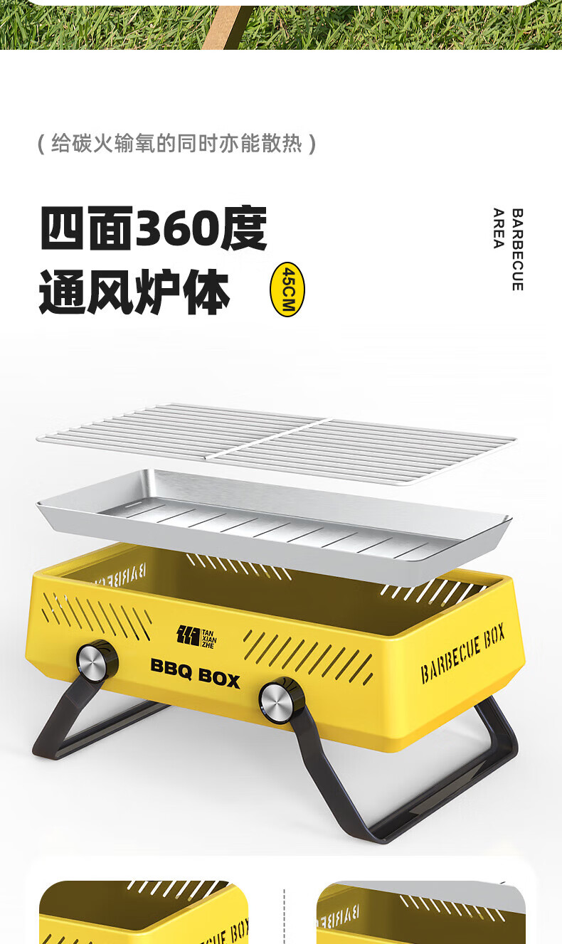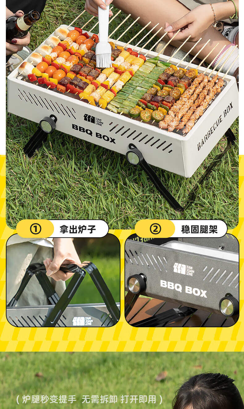 探险者烧烤炉户外露营野营烧烤炉子家用碳烤炉折叠便携炉子烤肉炉 灰色折叠款烧烤炉+烤网