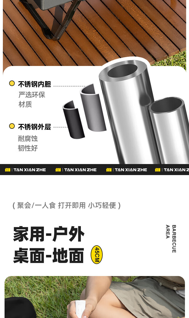探险者(TAN XIAN ZHE)2024新款电碳两用围炉煮茶烤火炉套装 烤网烤盘+收纳包【整机可拆卸】