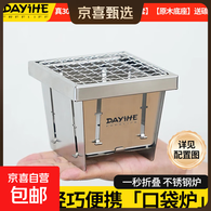 升级新款口袋炉围炉煮茶小火炉室内户外便携可折叠不锈钢烧烤架 真304网 加长款【烤签10件套】【原木底座】送碳