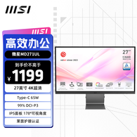 MSI微星(MSI)27英寸 4K 65W Type-c 10Bit 99%DCIP3 莱茵低蓝光认证不闪护眼屏 微边框 MD271UL