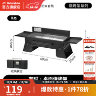 挪客Naturehike有时桌面烧烤架户外露营烧烤炉家用折叠烤串烤肉炉 黑色【双区烤网公文包式收纳】