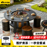 嘻由围炉煮茶户外烧烤桌庭院烤火炉烧烤架取暖炭火炉火盆碳炉套装家用 【100直径】单围炉桌+【送10斤木碳】