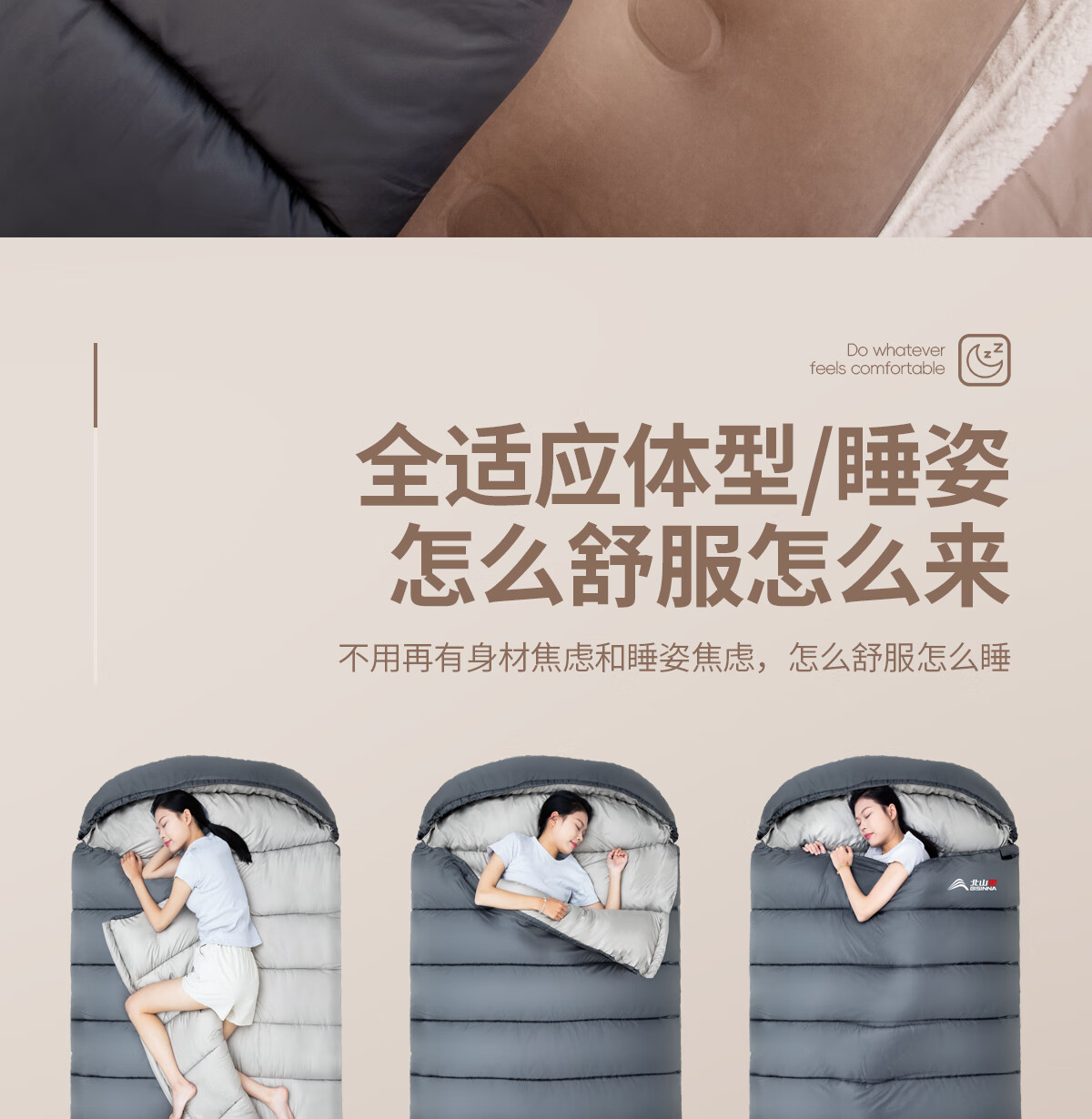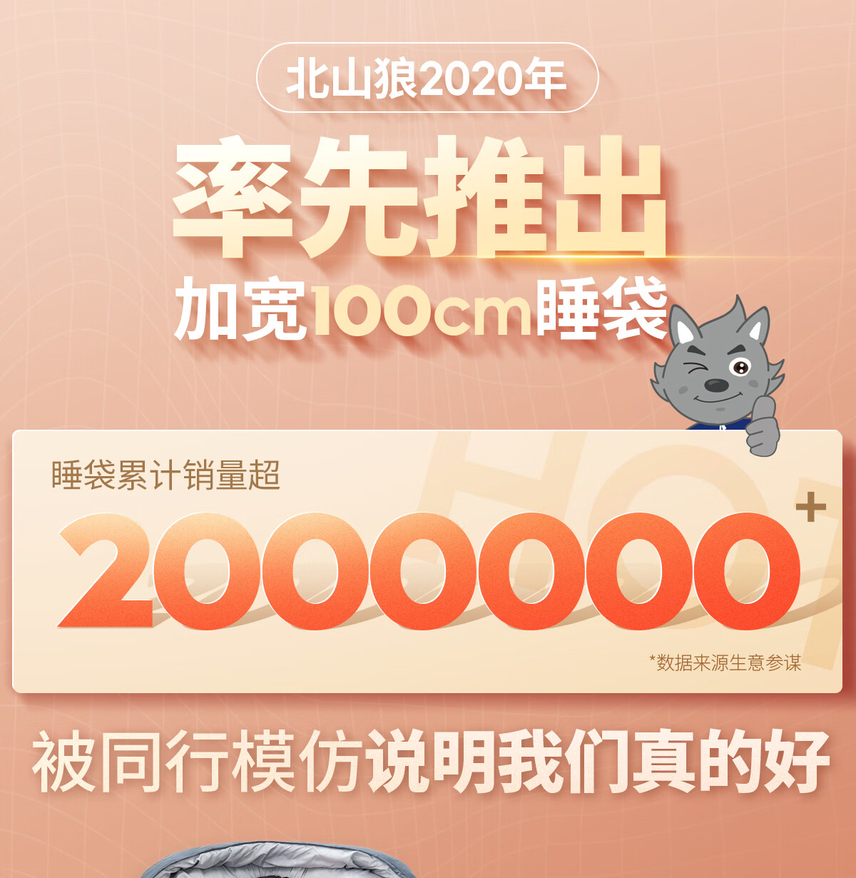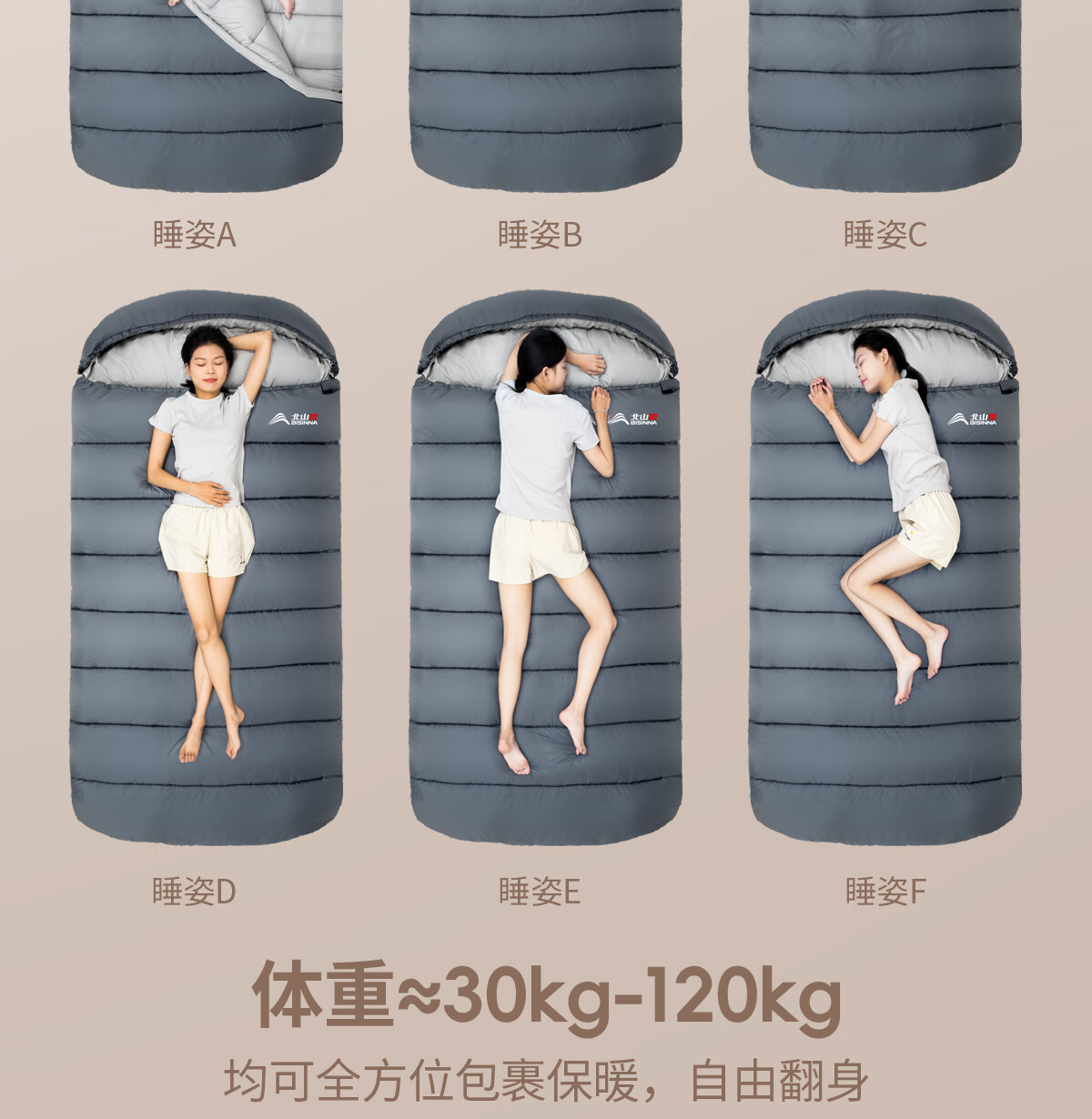 北山狼大码睡袋户外露营四季通用冬季加宽加厚保暖防寒单人大成人 1.5kg灰色送三宝