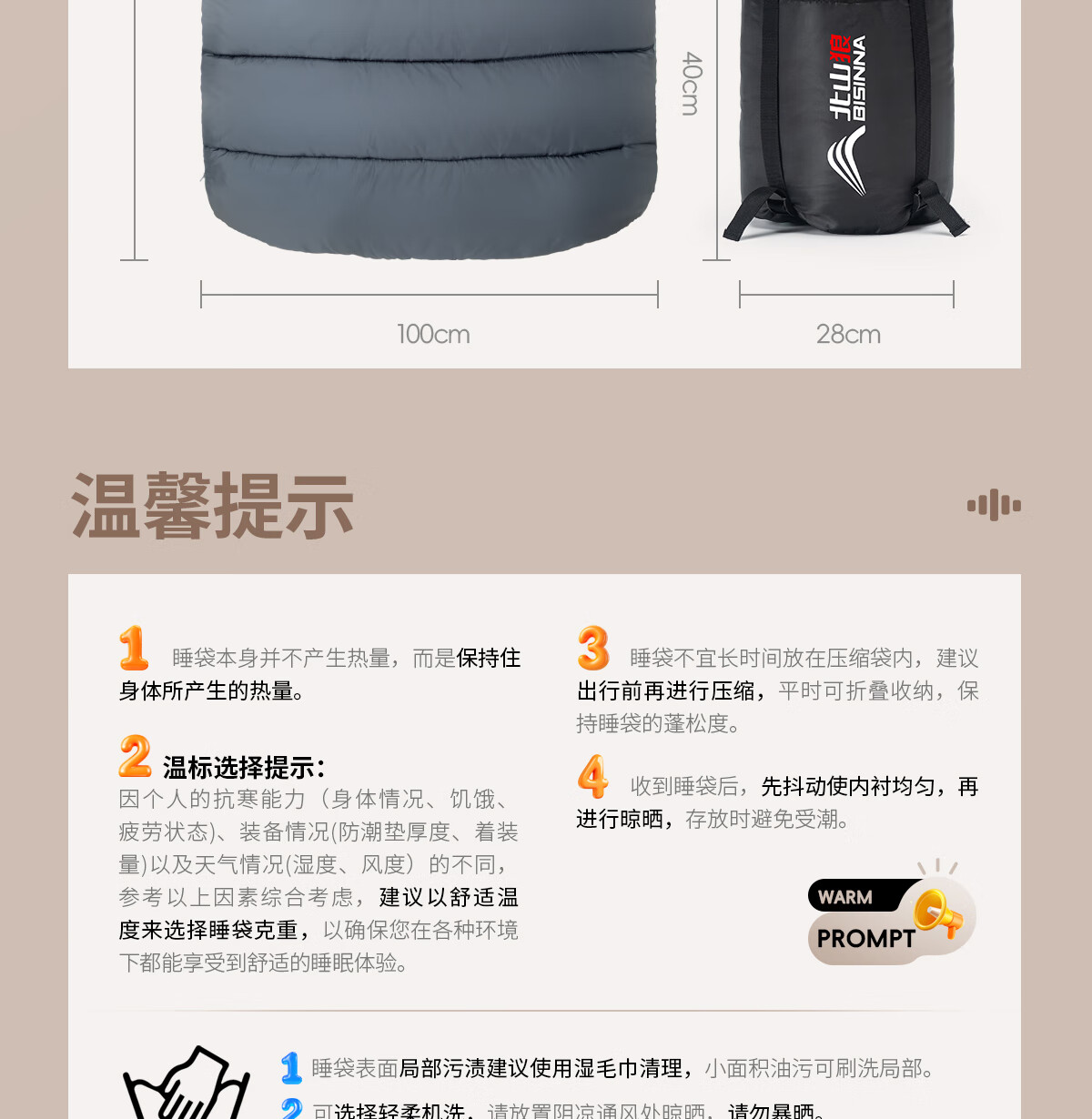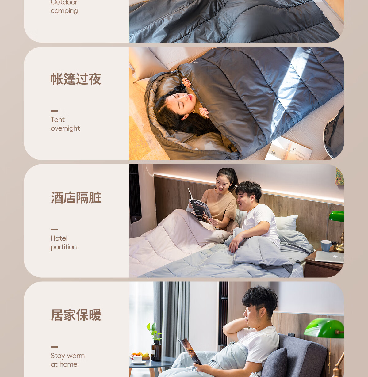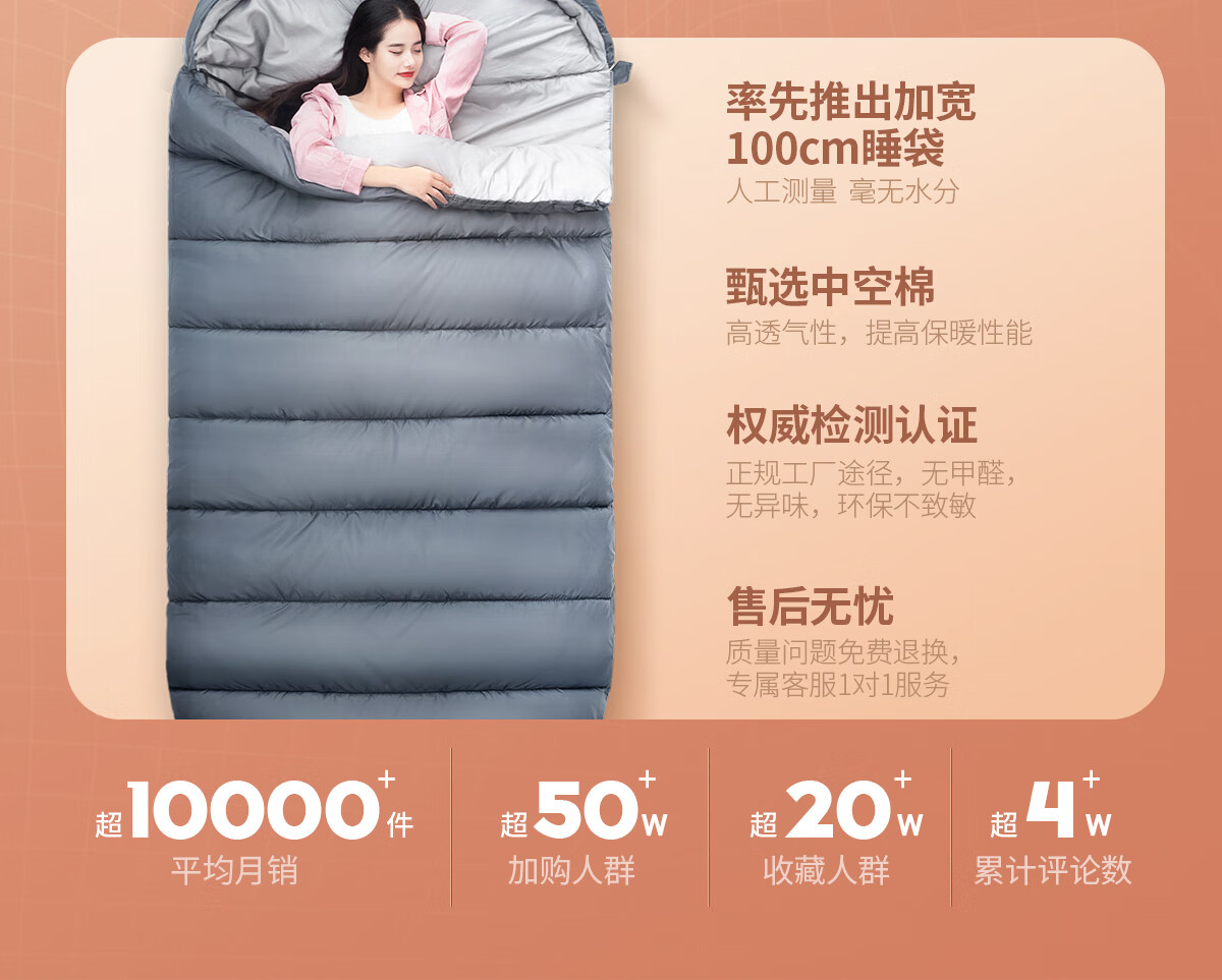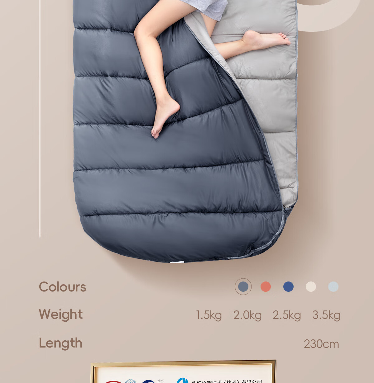 商家闪电发货,物流迅速,包装完好,睡袋非常舒适,保暖不闷热,也很透气,而且非常宽敞,并不像小睡袋非常紧绷,保暖性很好,并且很轻盈,推荐