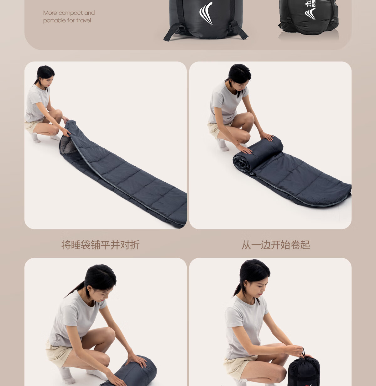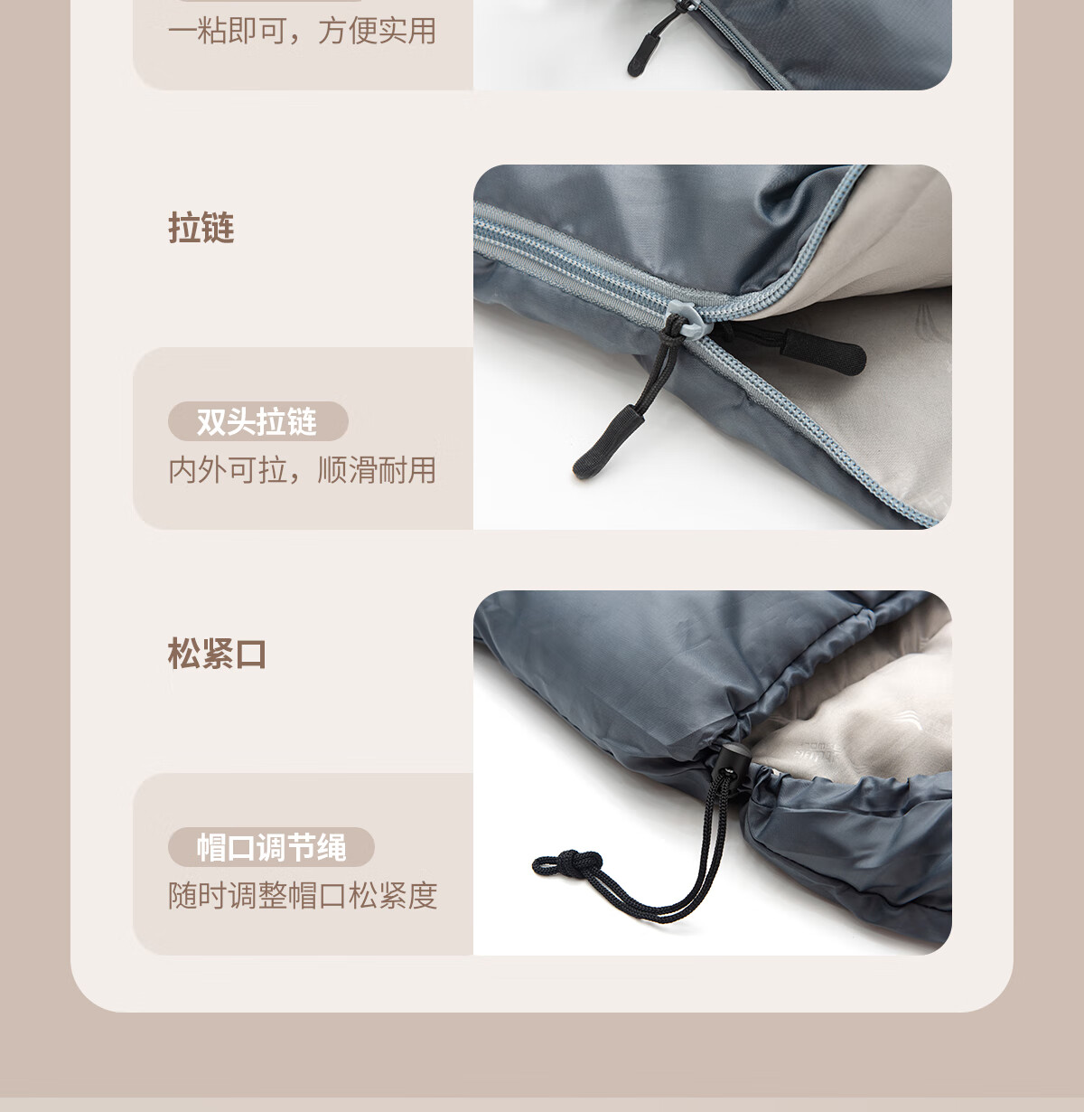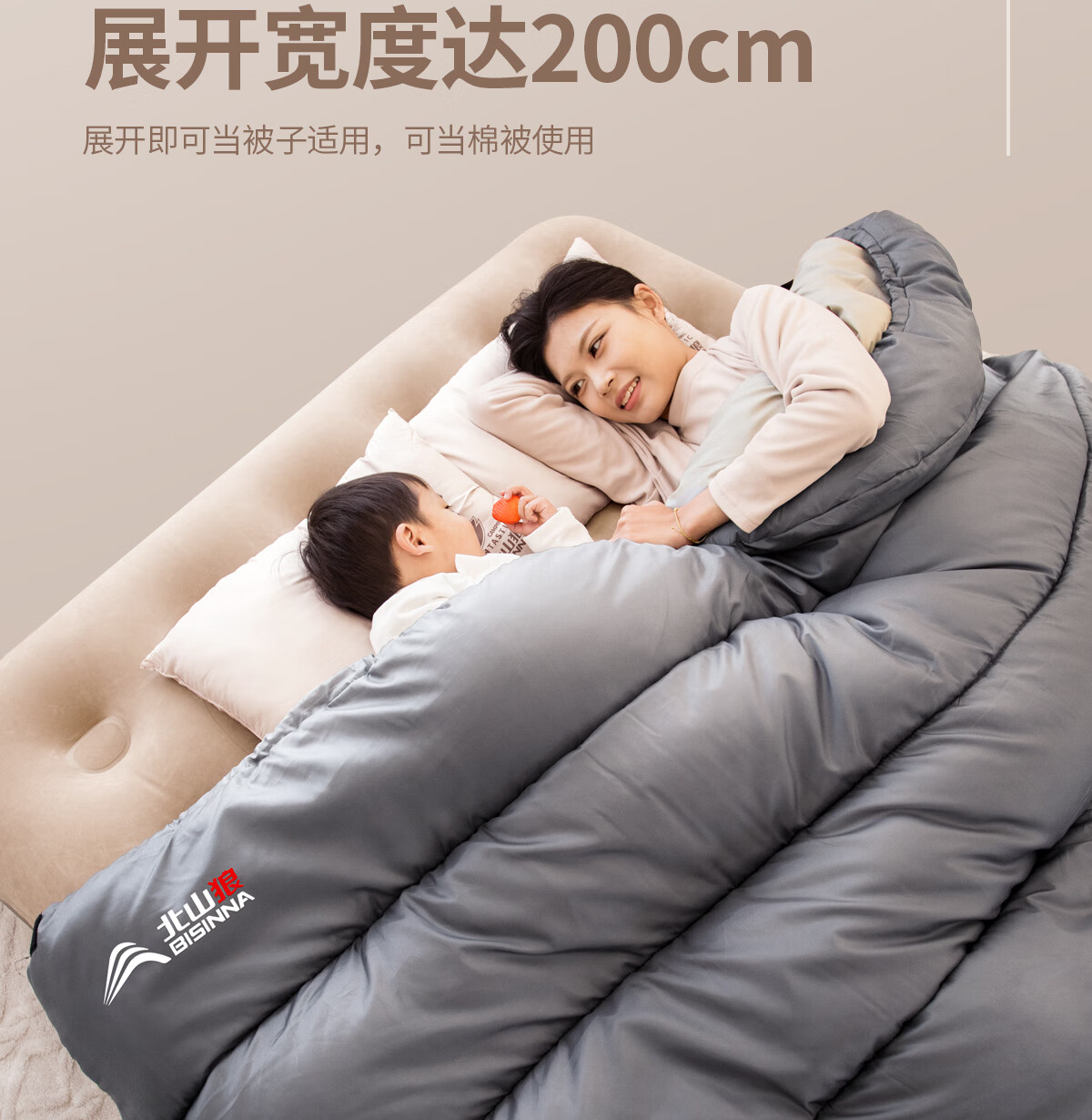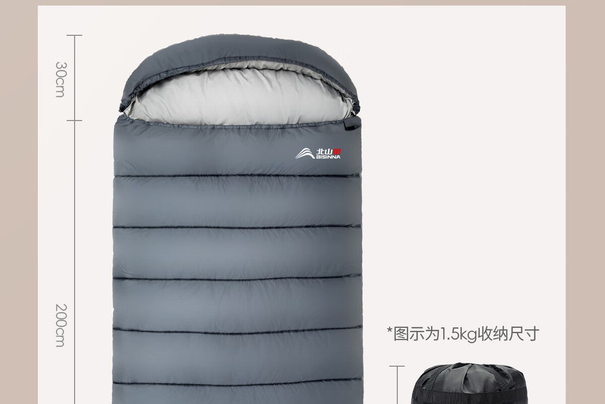 北山狼 户外睡袋成人冬季保暖加大加宽信封式棉睡袋露营单人加厚通用款 1.5kg灰色【12°C-17℃】