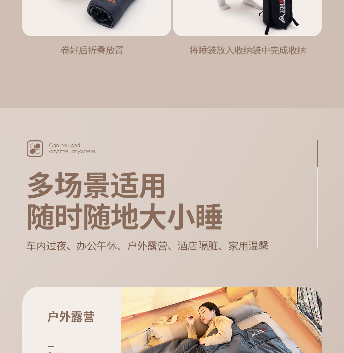 帐篷买上了,睡的也们买上了,然后打算带上孩子出去露营,就是这个睡袋拆了就不会再叠起来了。不如人家之前叠的好,就感觉装的时候不会装,我看见睡袋的话也比较暖和,一共买了3个