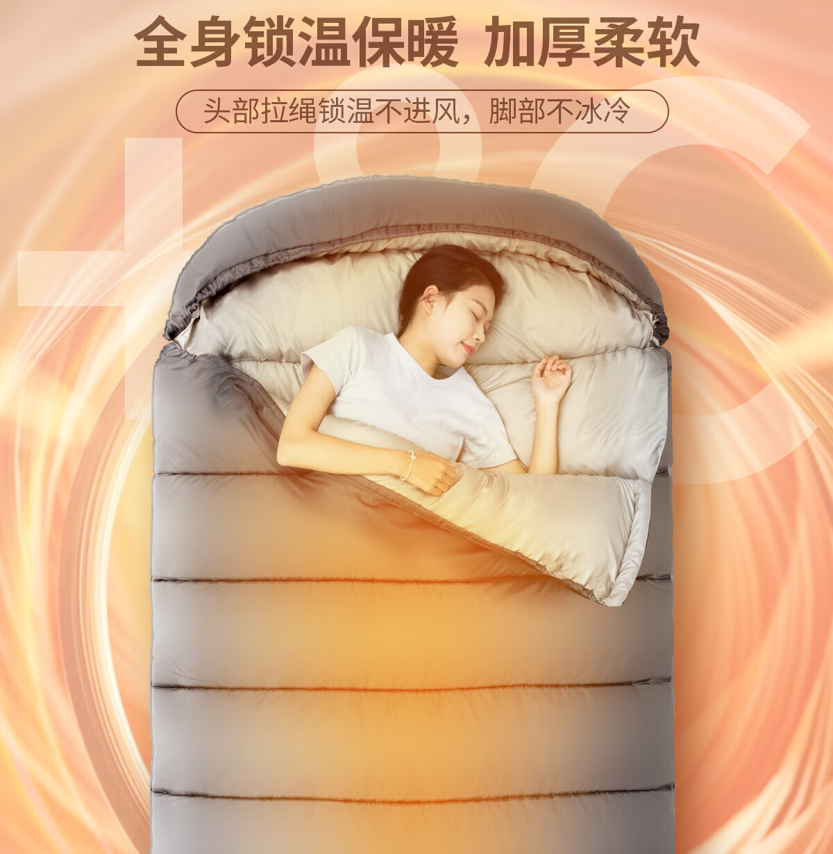 JEEP睡袋户外露营大人冬季冬天加厚防寒被子便携式隔脏四季通用款 升级款(1.3kg加固不跑棉)舒适温度6-12度