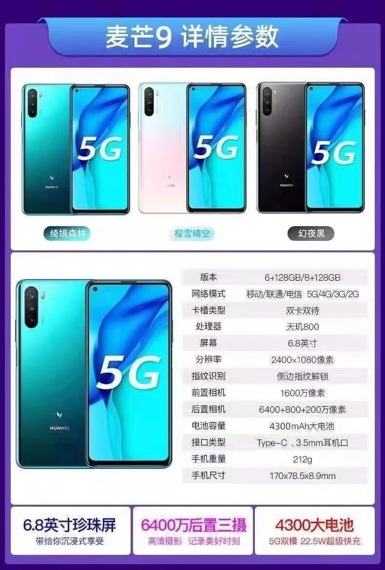 华为(HUAWEI)麦芒 9通5G双卡双待6.8英寸高清大屏高清摄像头学生备用手机 绮境森林 8GB+128GB