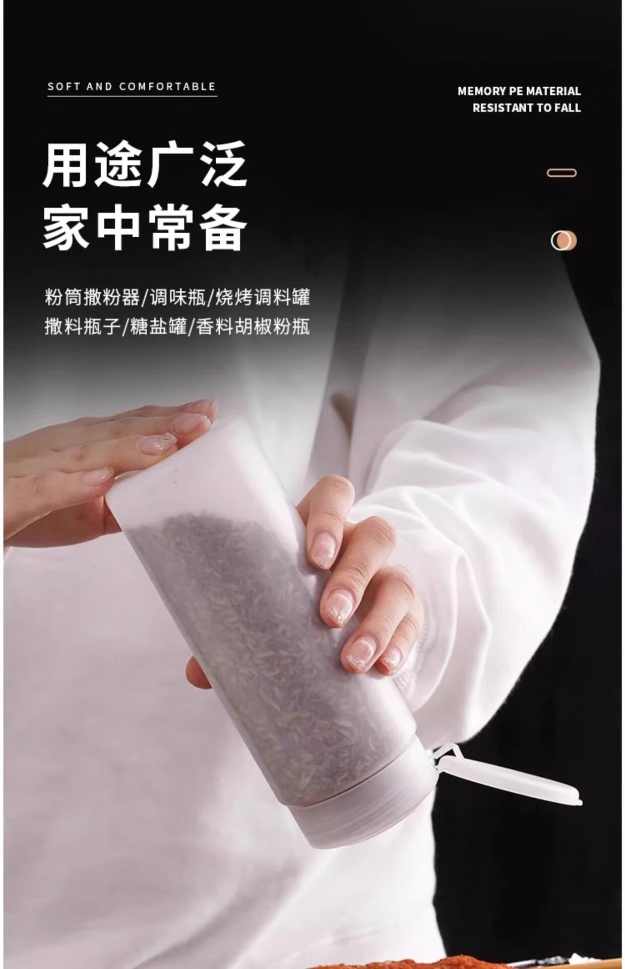 这个小瓶子真是厨房神器!烧烤时撒调料特别方便,单手就能操作,不会手忙脚乱。密封性很好,调料不会受潮,清洗也简单。设计很实用,性价比高。