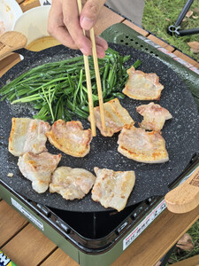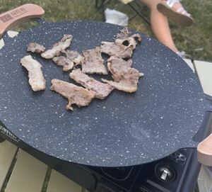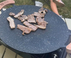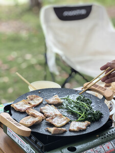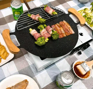 这个烤盘太适合家庭聚会了!30cm的尺寸刚好,麦饭石材质确实不粘,烤肉基本不用放油,清洗起来非常省事。榉木把手有效防烫,设计贴心。受热很均匀,烤东西不容易糊。唯一就是明火款需要搭配卡式炉使用,但换来的是无烟清爽的烧烤体验,很值得。