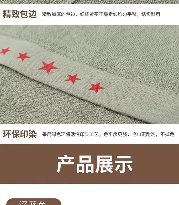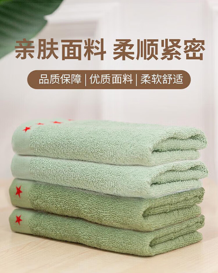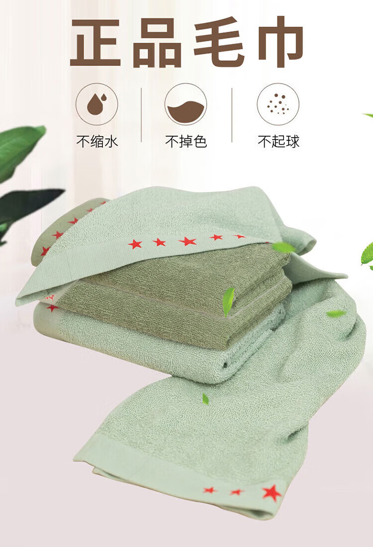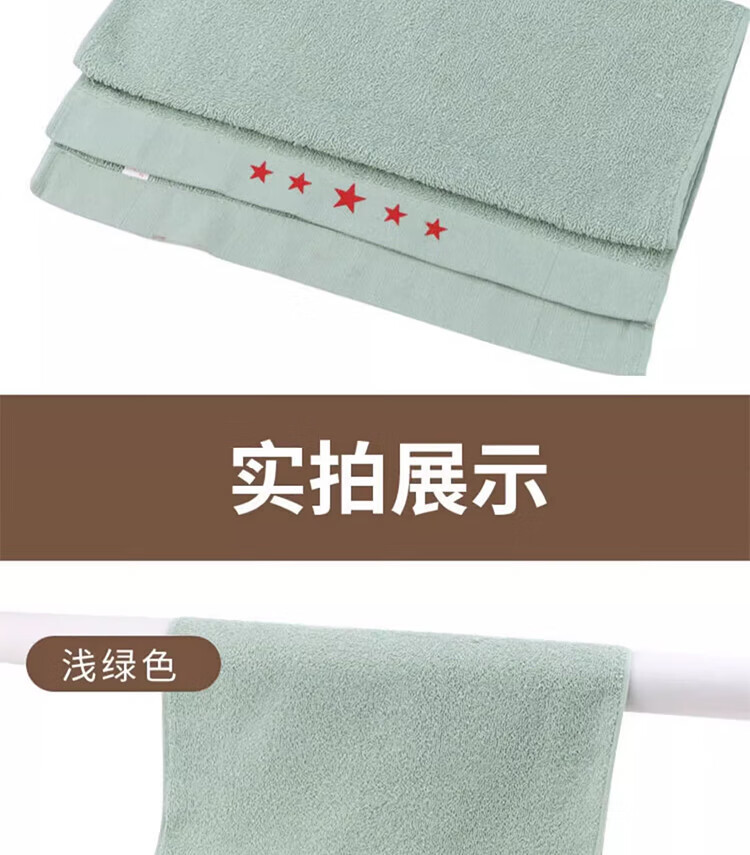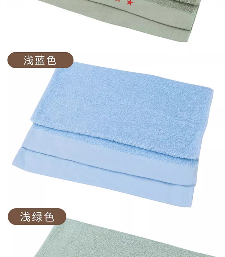际华三零一九制正式五角星毛巾内务军训用毛巾军绿色棉纺毛巾85x35cm绿毛巾 浅绿色毛巾-带五角星 一条装
