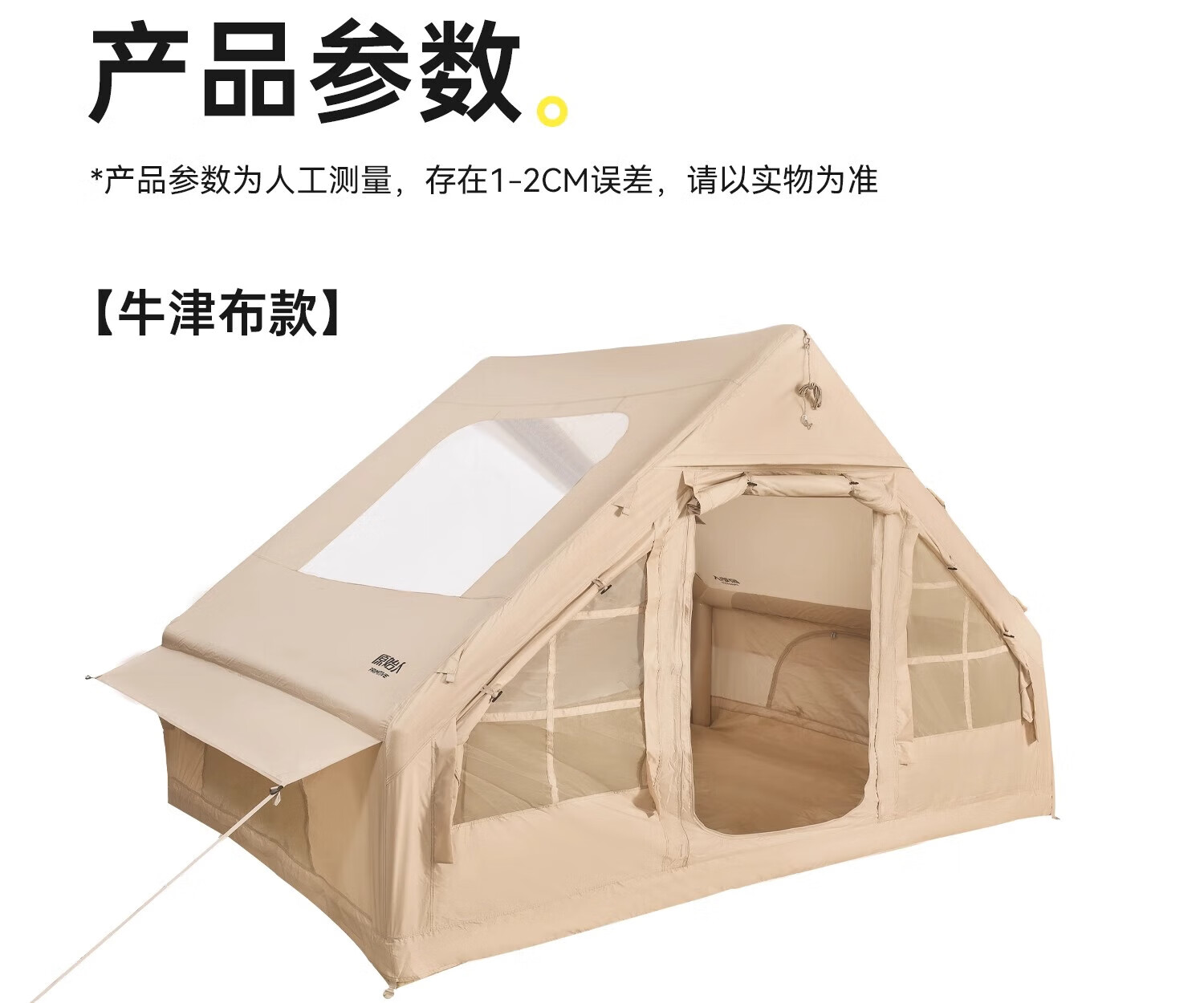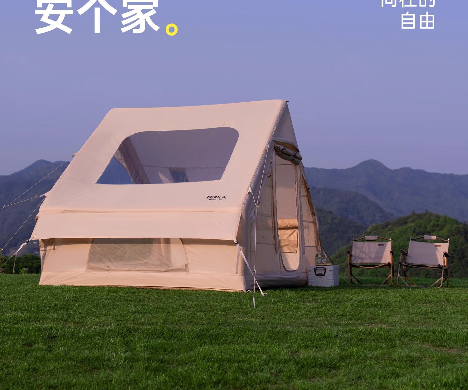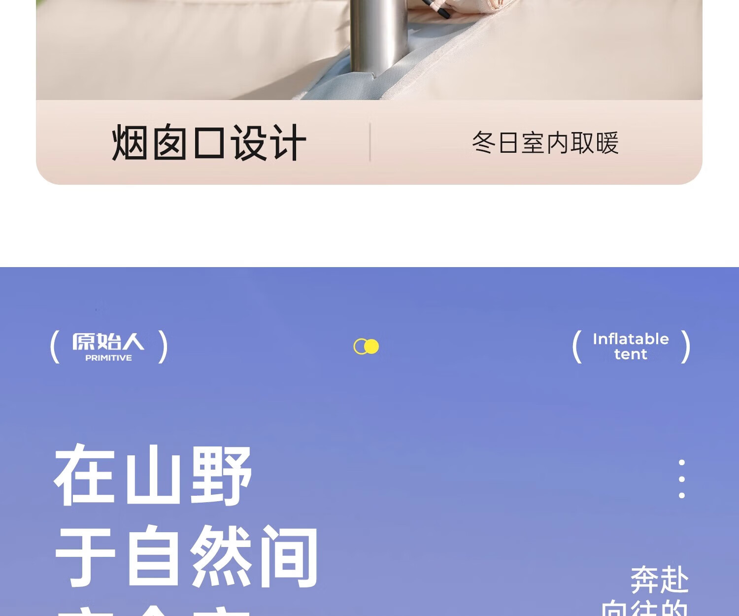 原始人充气帐篷户外野营过夜露营加厚防暴雨小屋房子自动装备全套 【天窗烟囱款】牛津布款6.3平方