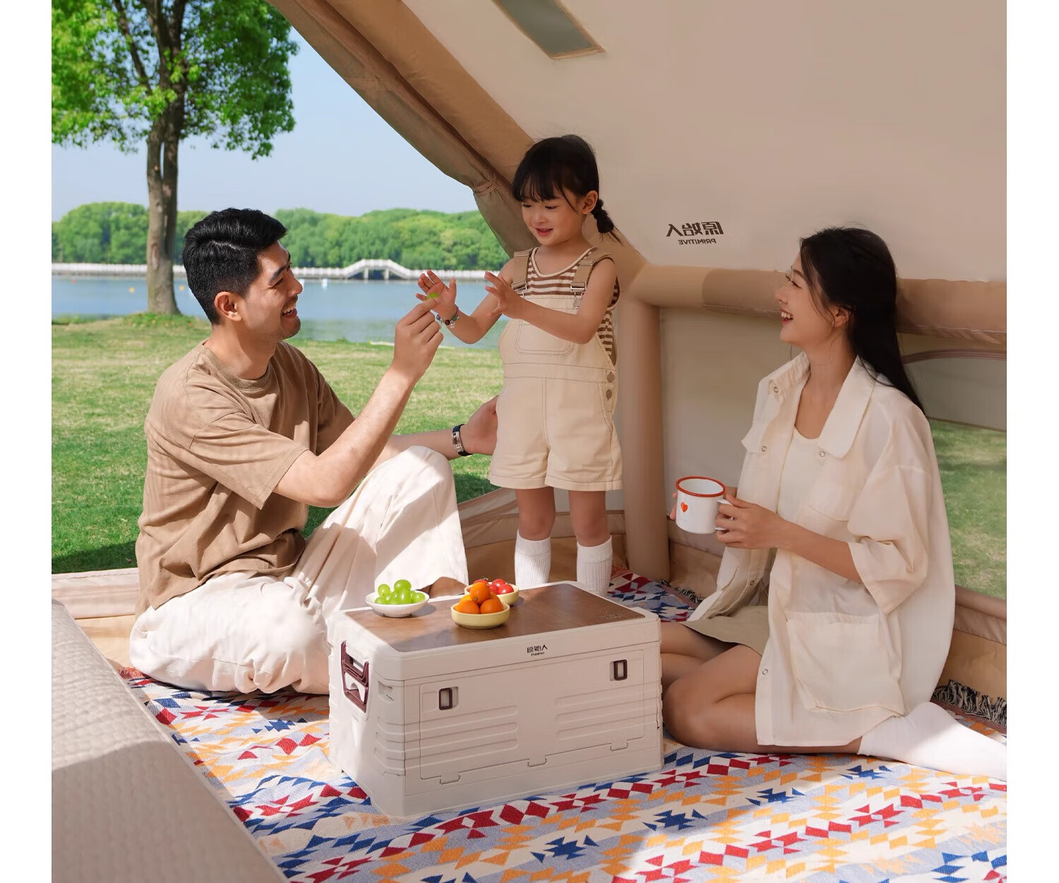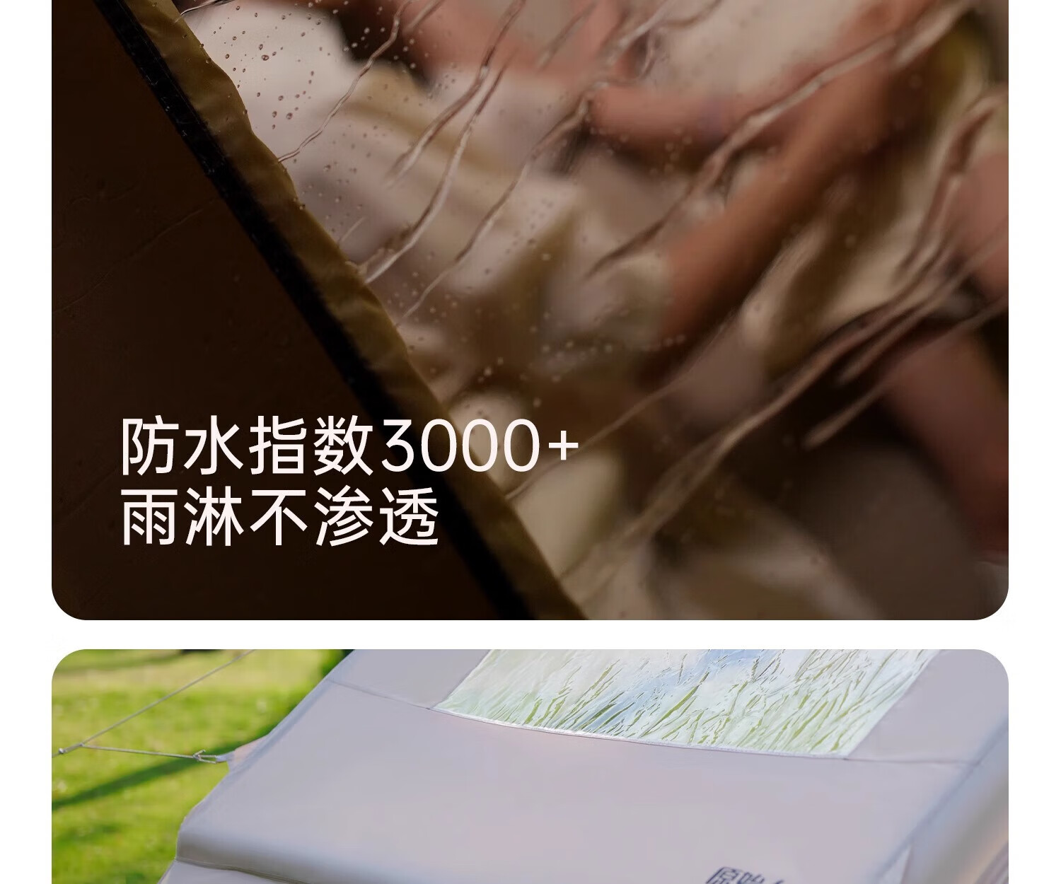 东西质量不错。充气很快,放气也很快。一家三口很够用。 就是没试过防雨效果,看着应该可以