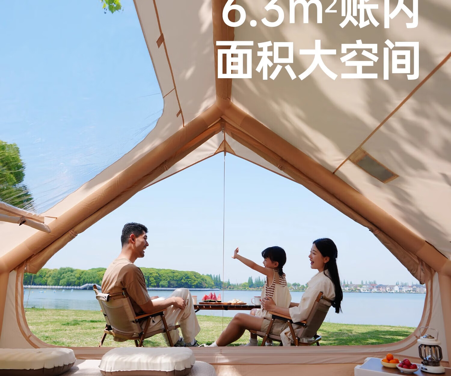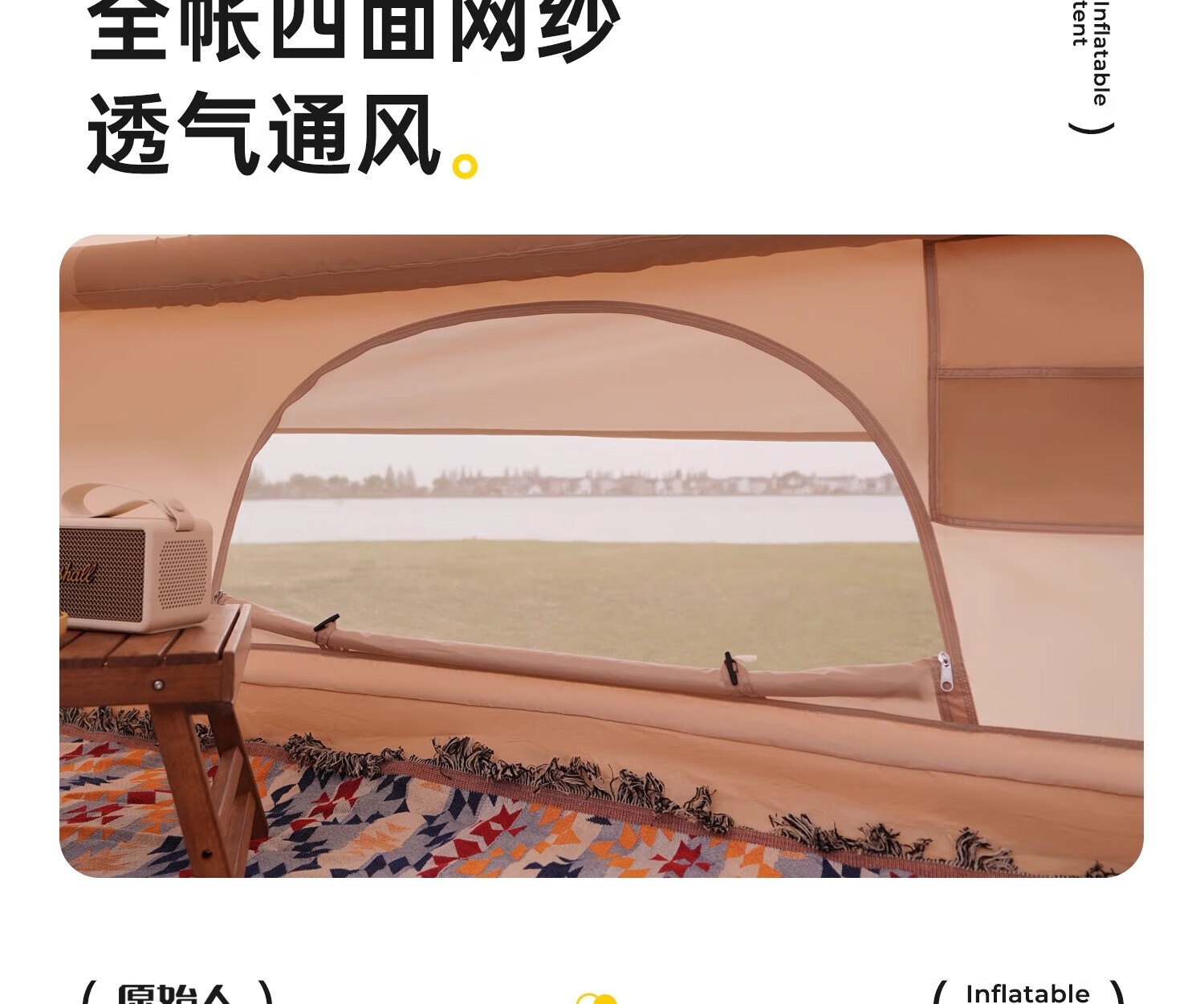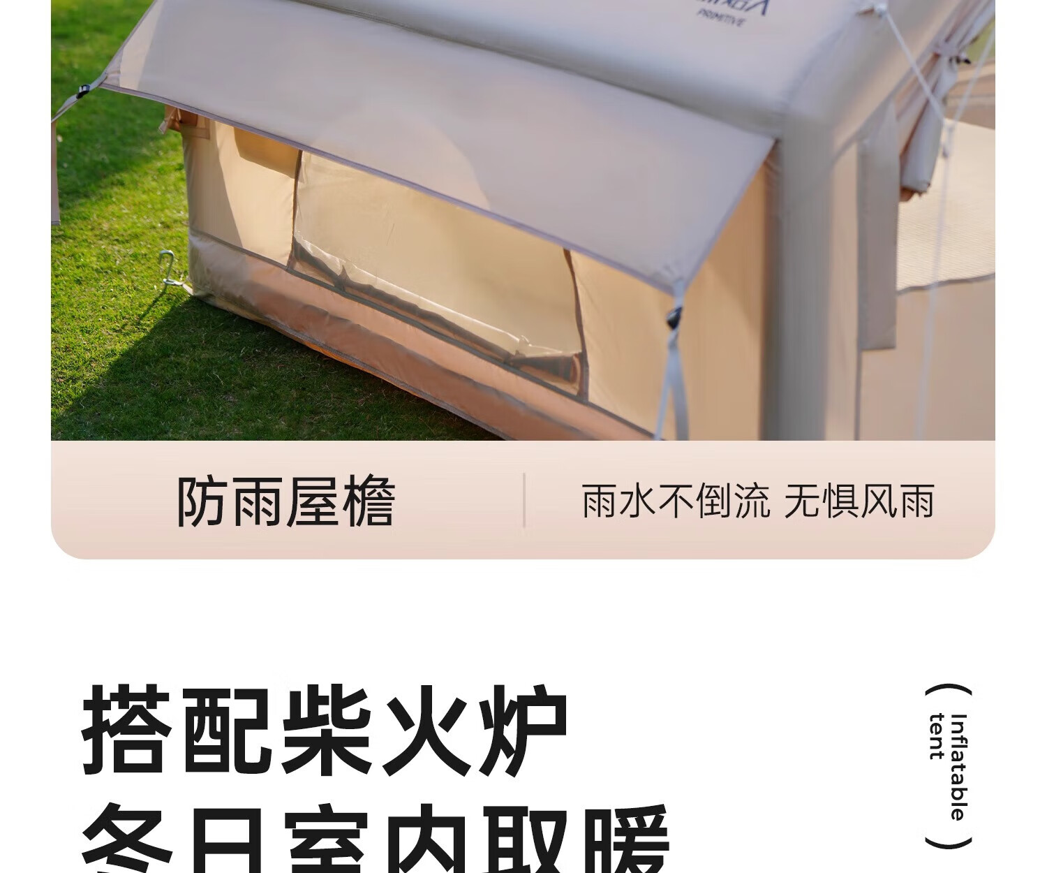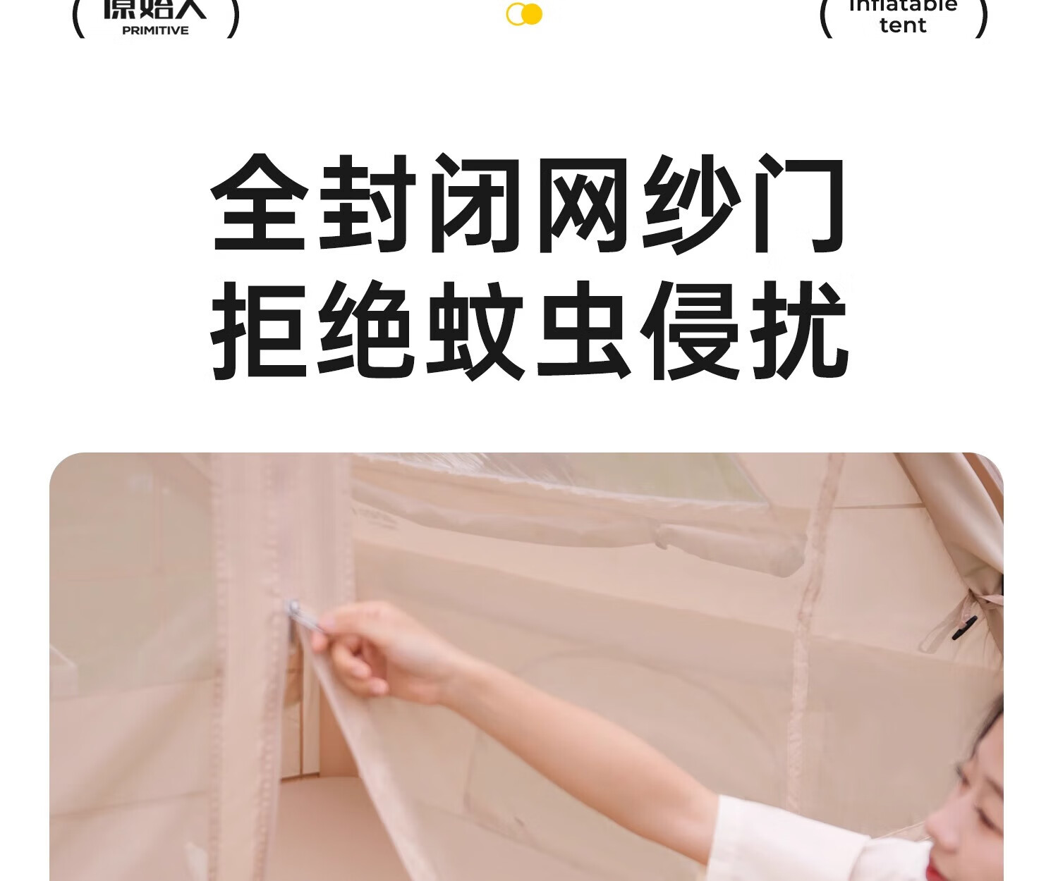 原始人充气帐篷户外野营过夜露营加厚防暴雨小屋房子自动装备全套 6.3平天窗烟囱款+双人床垫