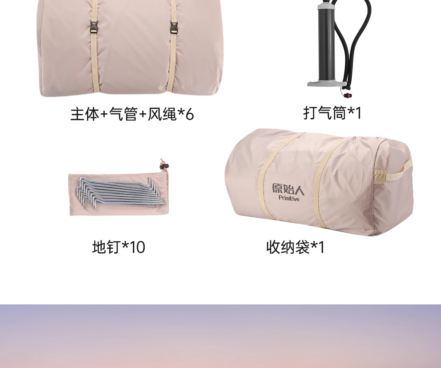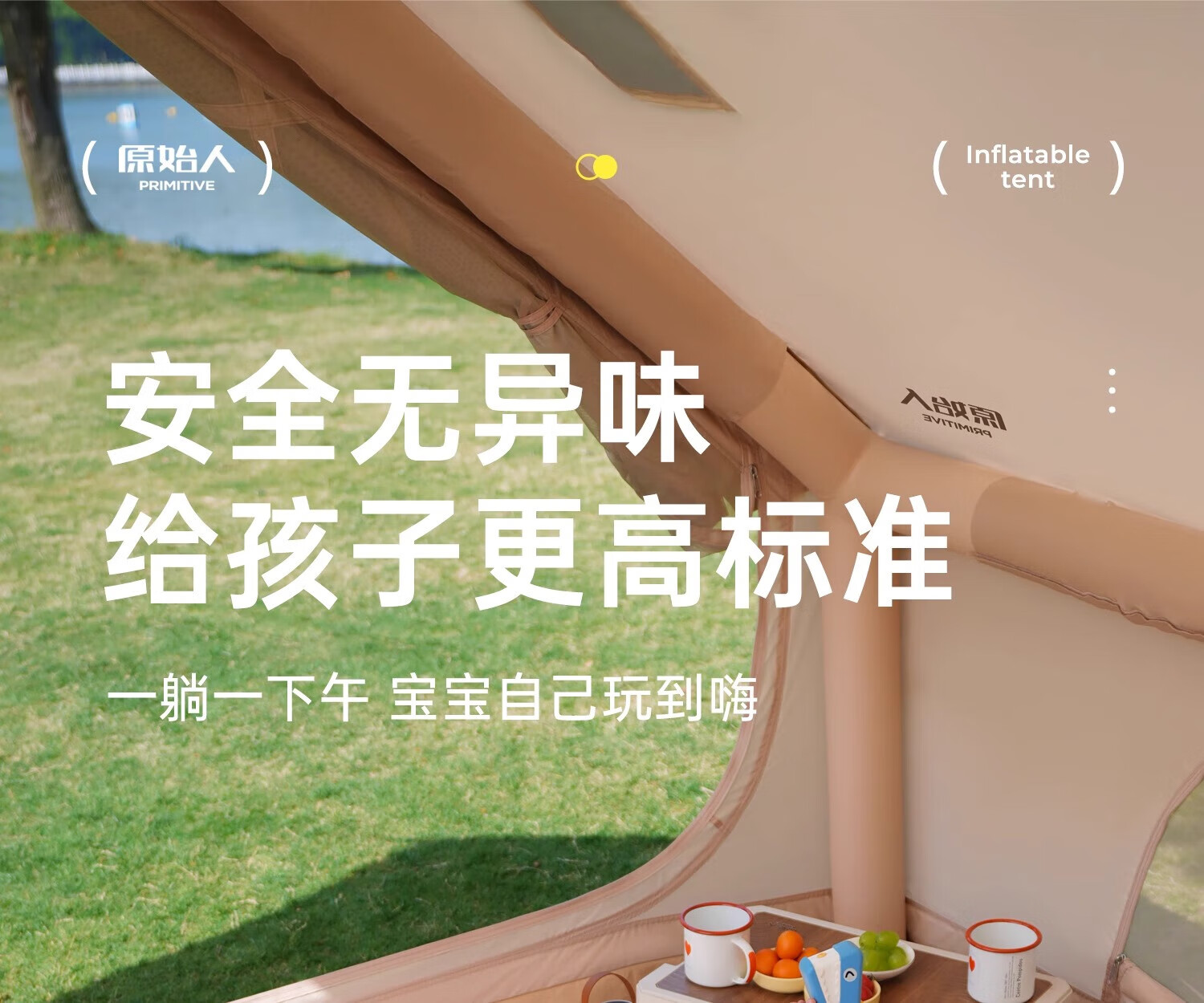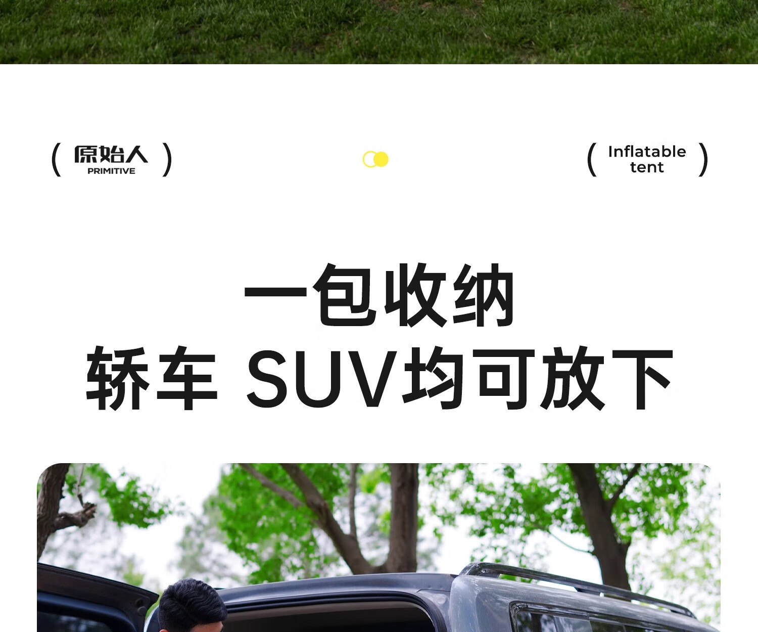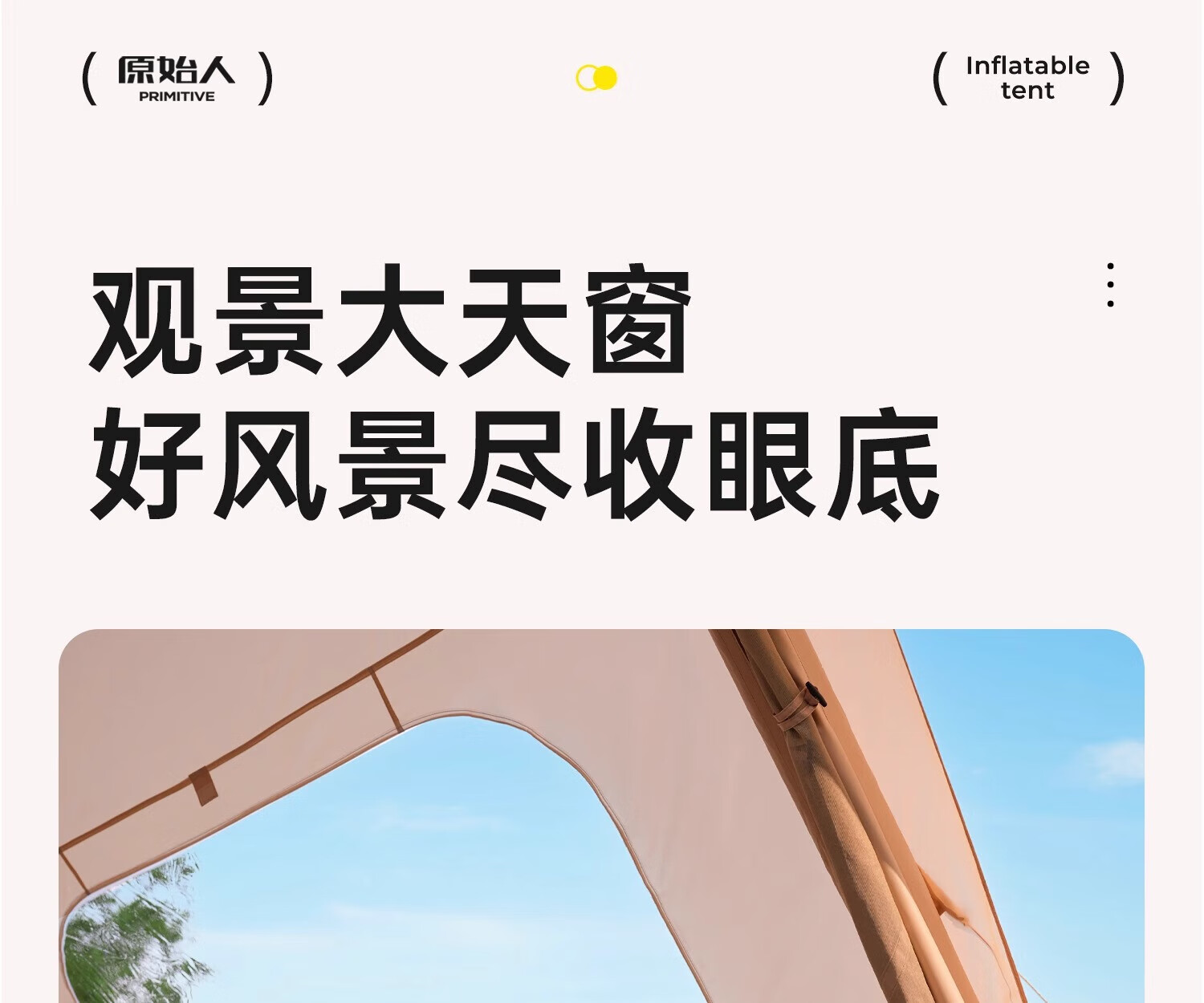 原始人充气帐篷户外野营过夜露营加厚防暴雨小屋房子自动装备全套 6.3平天窗烟囱款+双人床垫