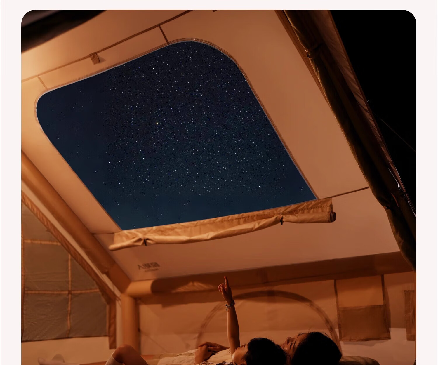 非常漂亮的帐篷,配上氛围灯确实很拉风,吸引很多人的目光。