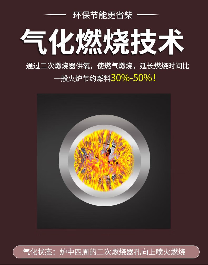 博炬360度全景观火壁炉取暖回风炉气化炉柴煤两用家用烤火炉节能无烟 360°全景观火-单炉体无桌面(可上下烟道)