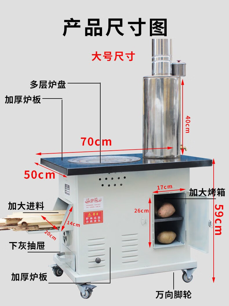 NAOISKEY 脑斯基家用取暖炉柴煤两用室内冬天户外农村新型烧煤木炭烤火柴火灶炉子 50#柴火款取暖炉 平面款30%的人选择 铁烟筒加厚