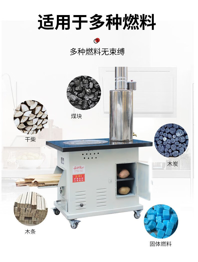 都格(送货上门)烤火炉家用气化炉柴煤两用农村取暖炉室内无烟无尘灶 0.8米不锈钢单桌面特厚