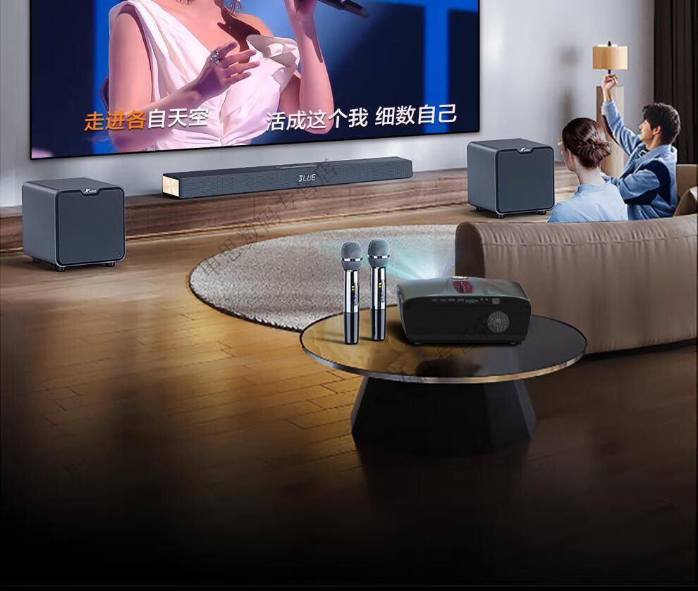 HKMW适用户外露营投影仪新款投影机4k家用超高清办公用会议8K3D电视机一体便携手机投屏家 旗舰K歌版+回音壁音响+ 双个低音炮 套餐五