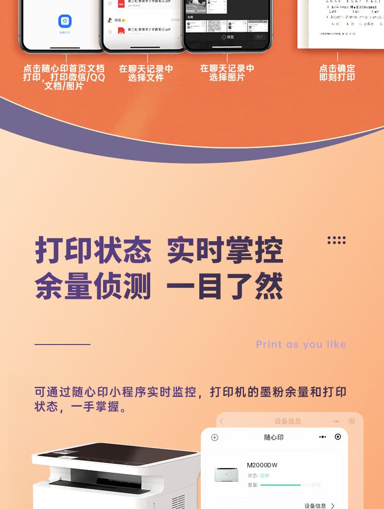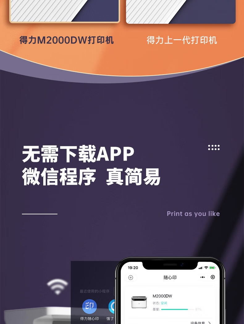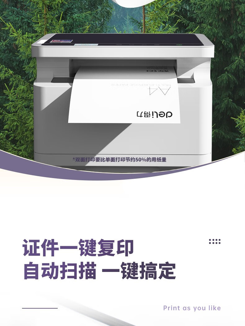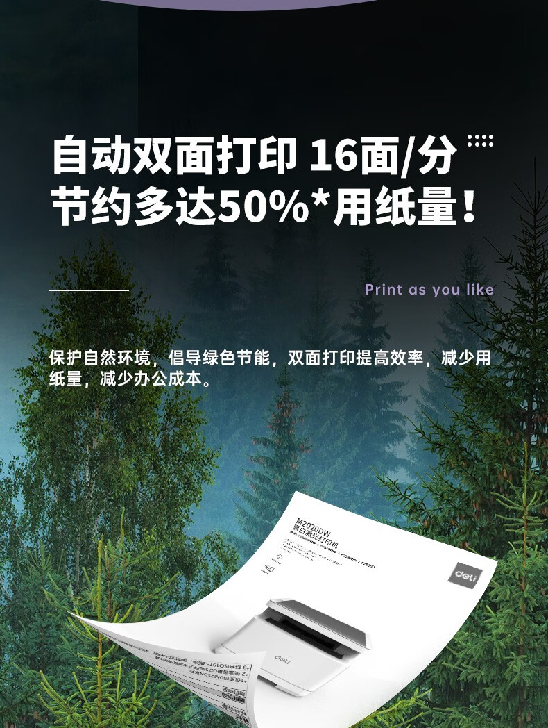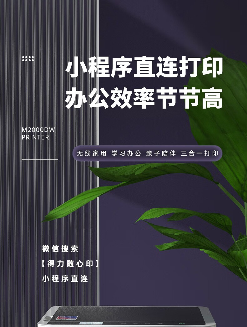 得力 (deli) 云打印无线WiFi黑白激光打印机家用办公打印复印扫打印机家用喷墨打印机M2000DW M2000单面打印+复印+扫描USB连