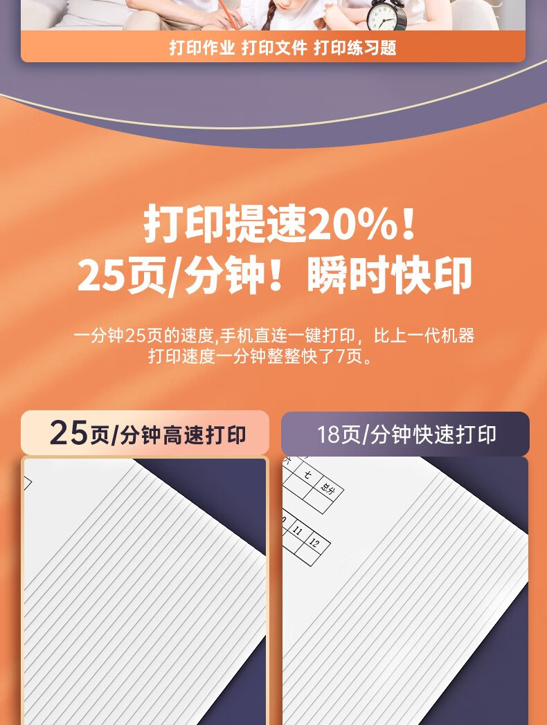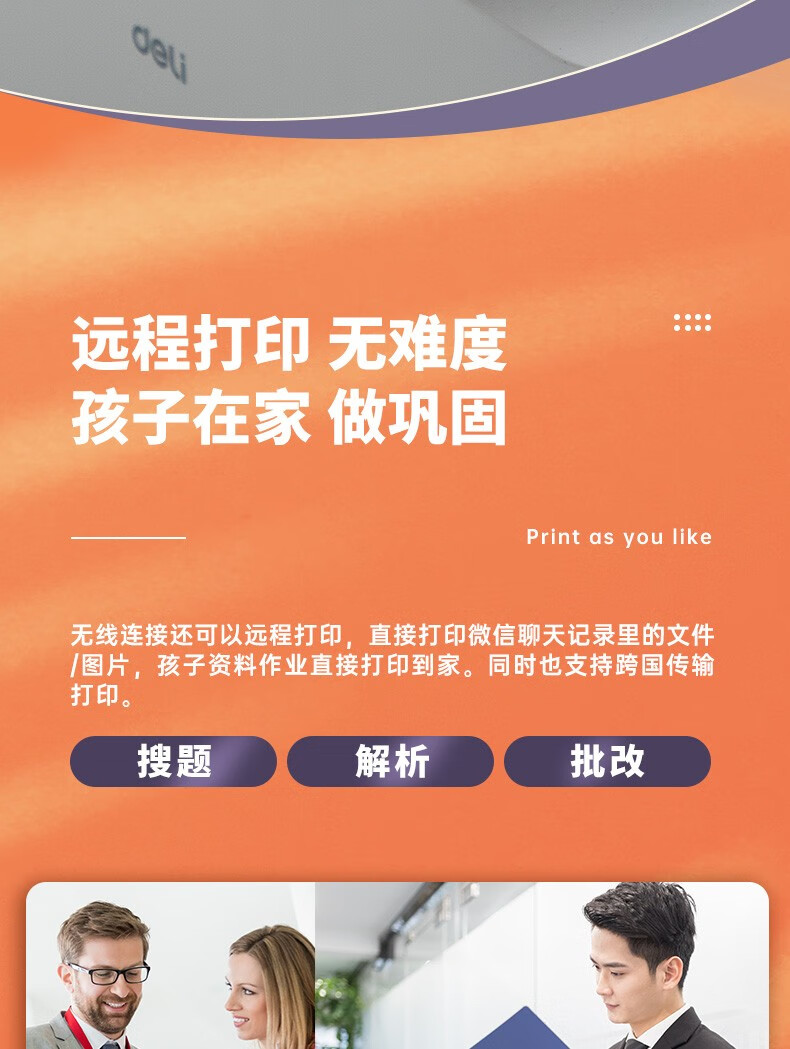得力(deli)超清错题打印机 扫描家用迷你小型A4打印机初高中学生错题整理便携式口袋黑白无墨蓝牙无线打印机 高清充电版|送3卷7米打印纸+速干笔+学习题库
