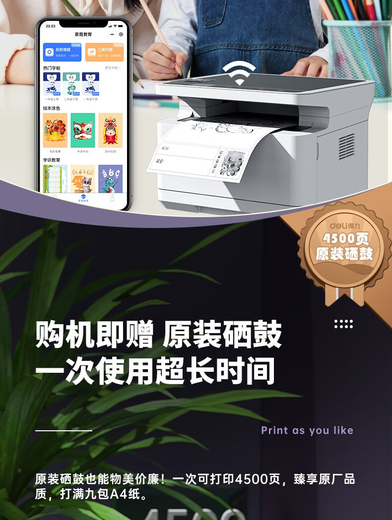得力云打系列多功能黑白激光一体机 学生作业资料文件 双面速打 商用打印机家用打印机手机打印机 2000系列标配硒鼓 T2A 2000页