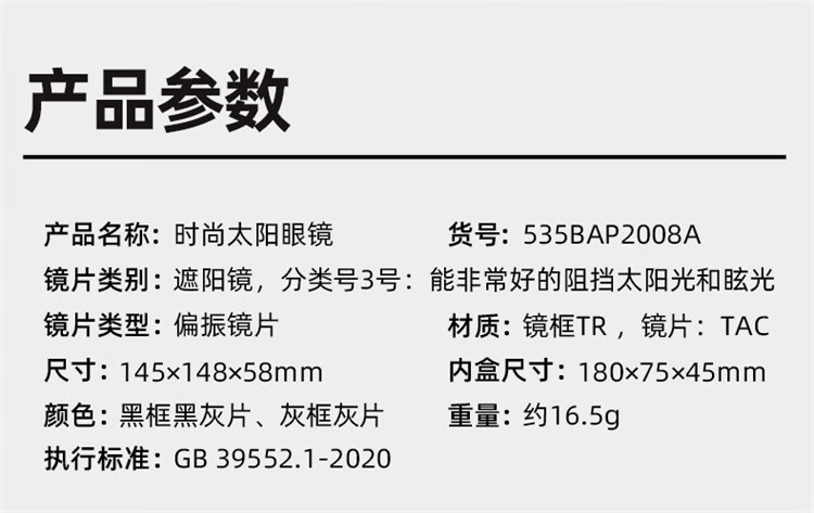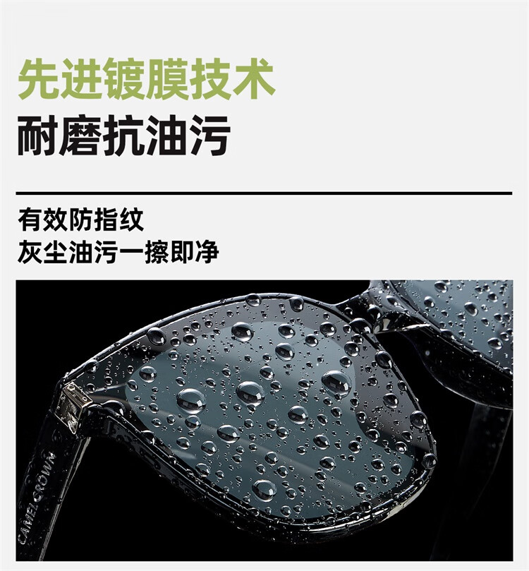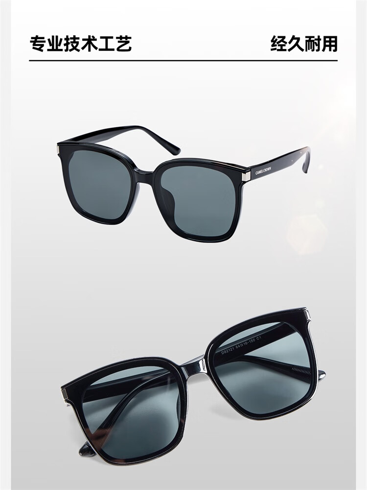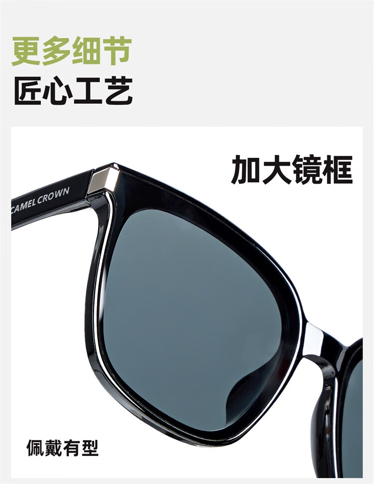 CAMELCROWN墨镜高级太阳眼镜开车遮阳户外护目防风新款男女款正品 黑框黑灰片,535BAP2008