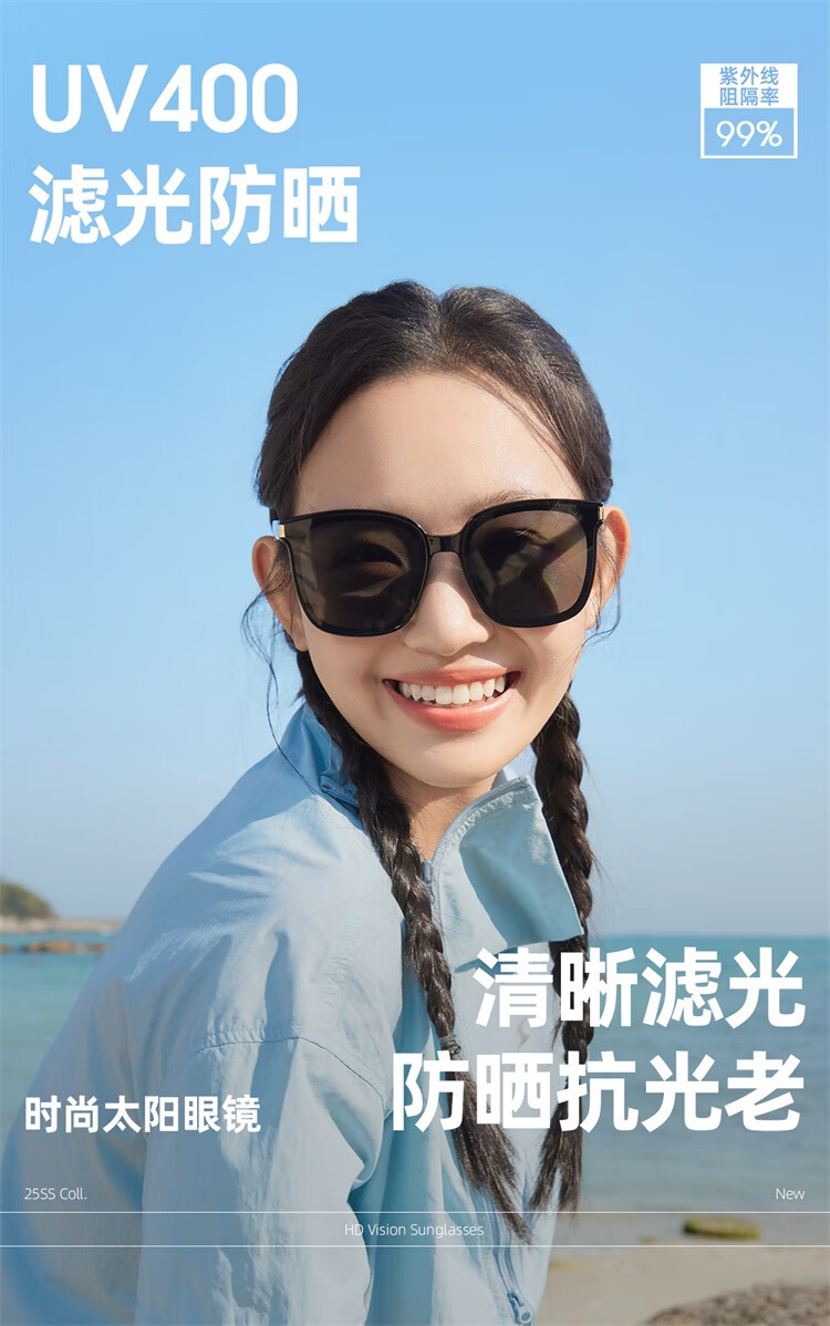 五一出行购买清单,很漂亮的眼镜,质量也很不错,眼镜戴上非常酷,款式也很时尚,戴上对着眼睛也不刺眼,质量轻,不压鼻梁