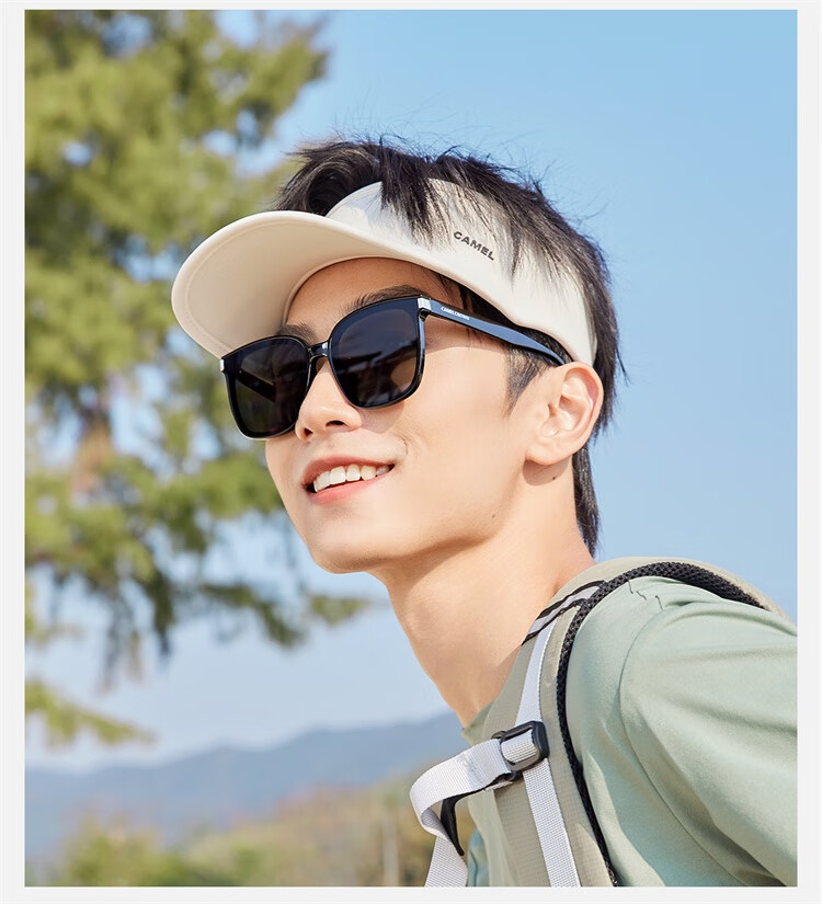 在京东买的这款骆驼墨镜,黑框黑灰片,徒步、开车时的遮阳超给力!户外防风护目效果一流,男女通用,戴着舒服不压鼻。质量杠杠的,正品保障,性价比高,强烈推荐入手!
