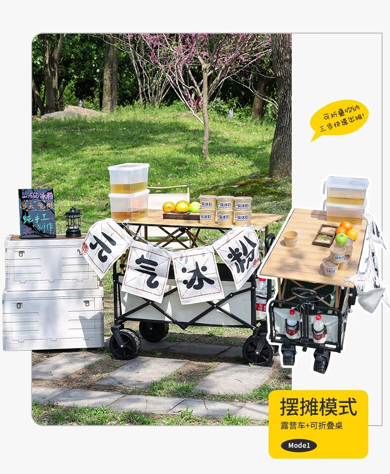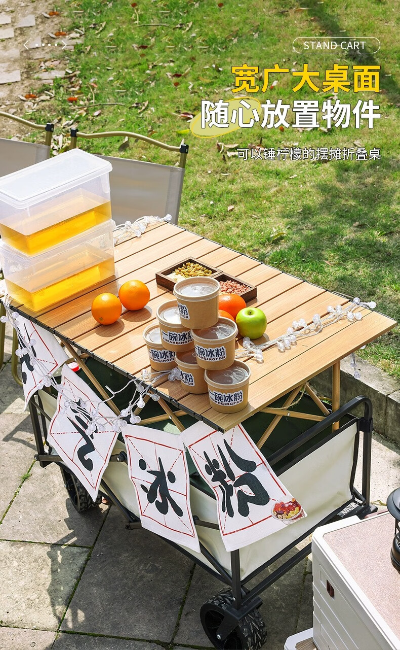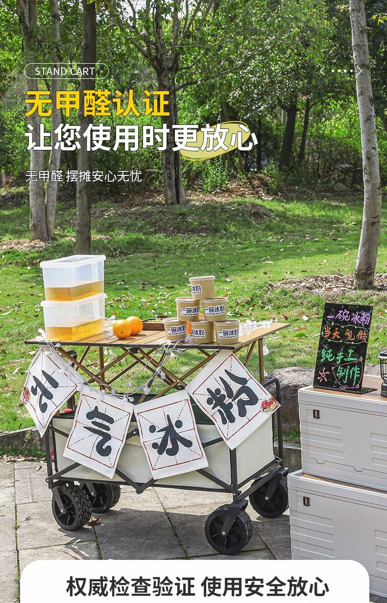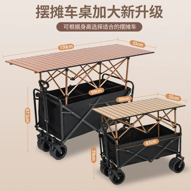 摆摊推车可折叠露营带桌子小吃车商用夜市烤肠冰粉车野餐摆摊神器 117加长桌 可升降(米车+木纹桌)