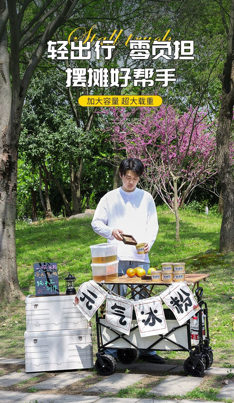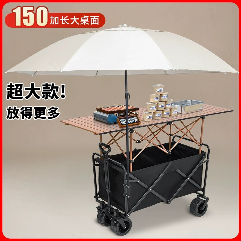 露营摆摊推车一体车折叠桌伞地摊野餐车移动夜市可升降餐车 巨无霸坦克轮+120桌+伞