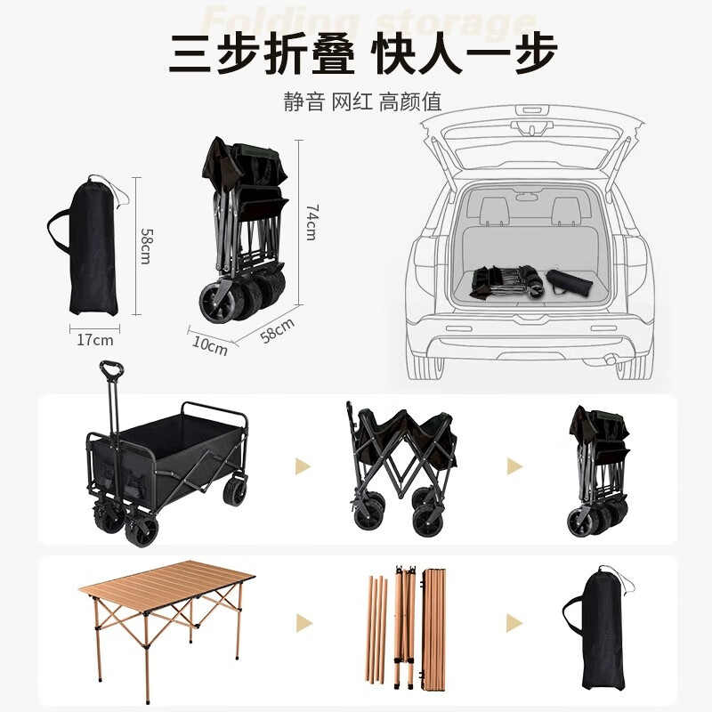 可以,这车真的方便,装东西特别能装,出去露营一趟啥都能塞进去。轮子顺滑,拉起来不费劲,折叠也简单,收起来不占地方。实用性满分。