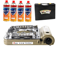 脉鲜红外线卡式炉户外便携式猛火燃气炉露营野营野外瓦斯炉烧水炉具 香槟色+罐子4个
