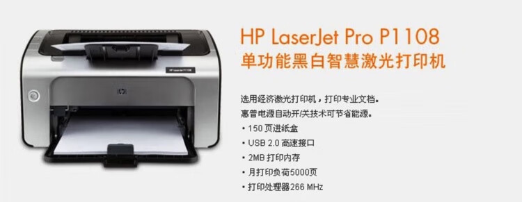 hpHP P1106 1108黑白激光打印机家用商务办公凭证资料作业打印 全新惠普P1108加小白盒手机打印